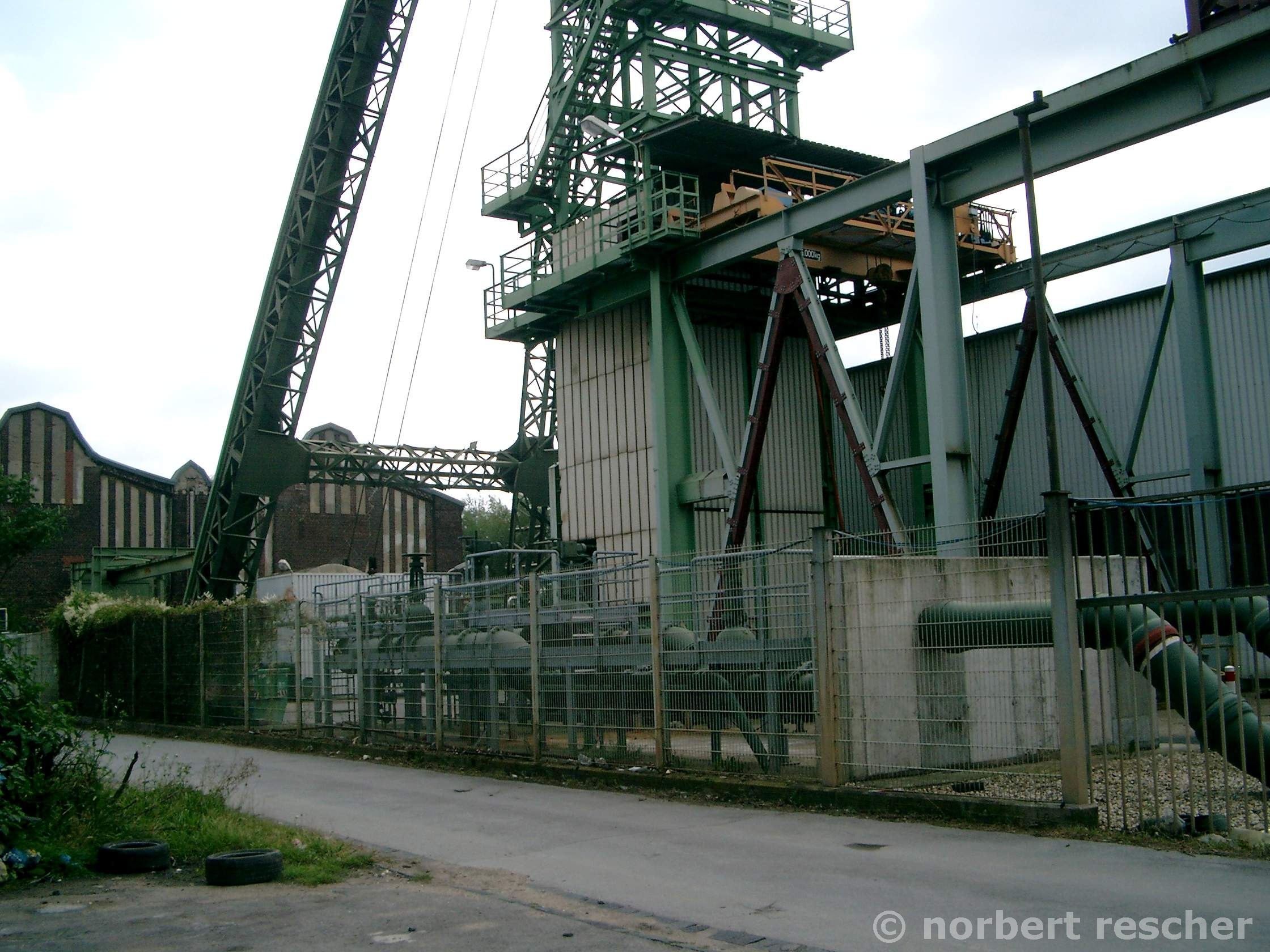 Fördergerüst. Daneben standen noch einige Werkstatt- und Verwaltungsbauten und die