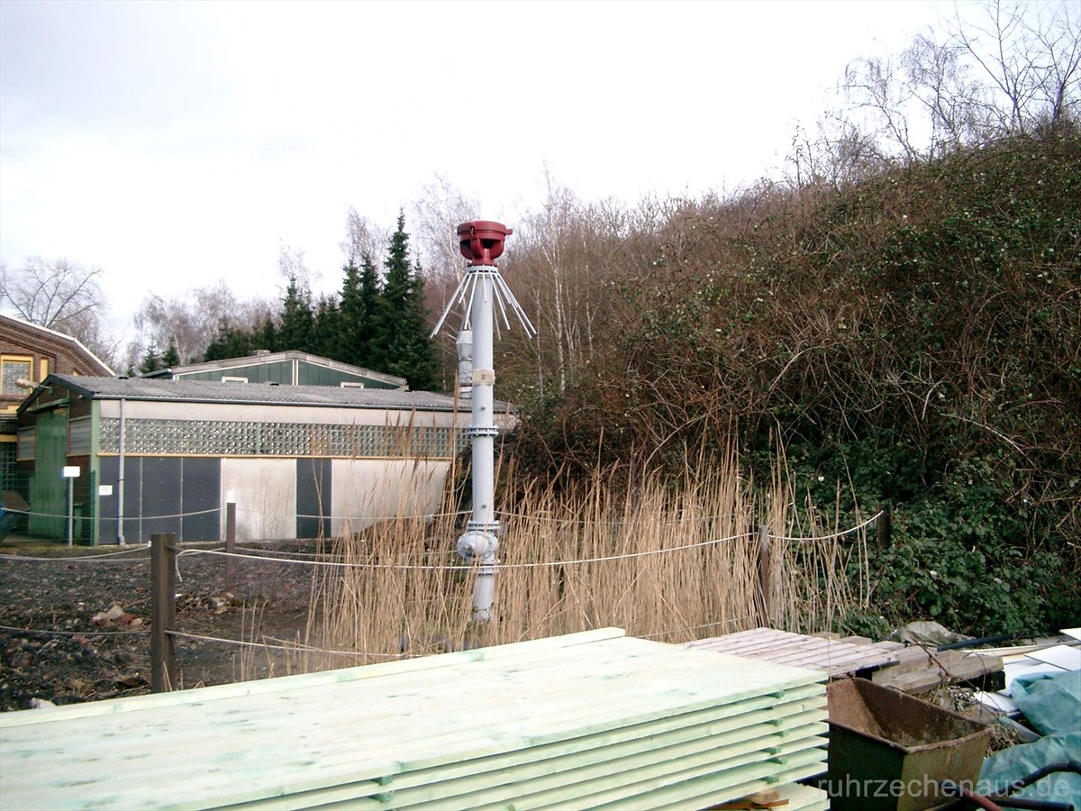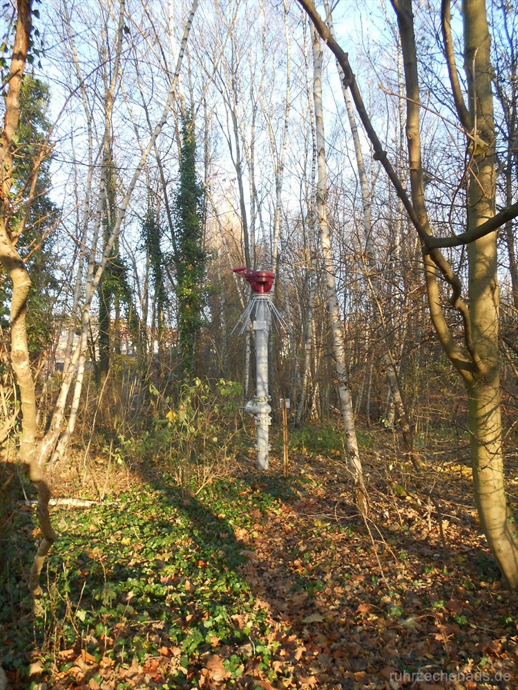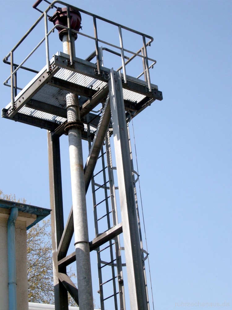 recht individuellen nur 27 m hohen Strebengerüst überbaut, das wegen des geringen Schachtdurchmessers aussen lag. Es war ab 1885