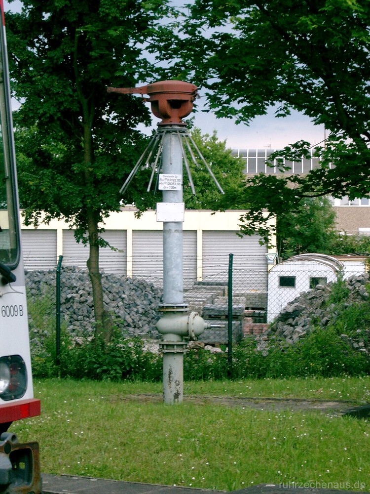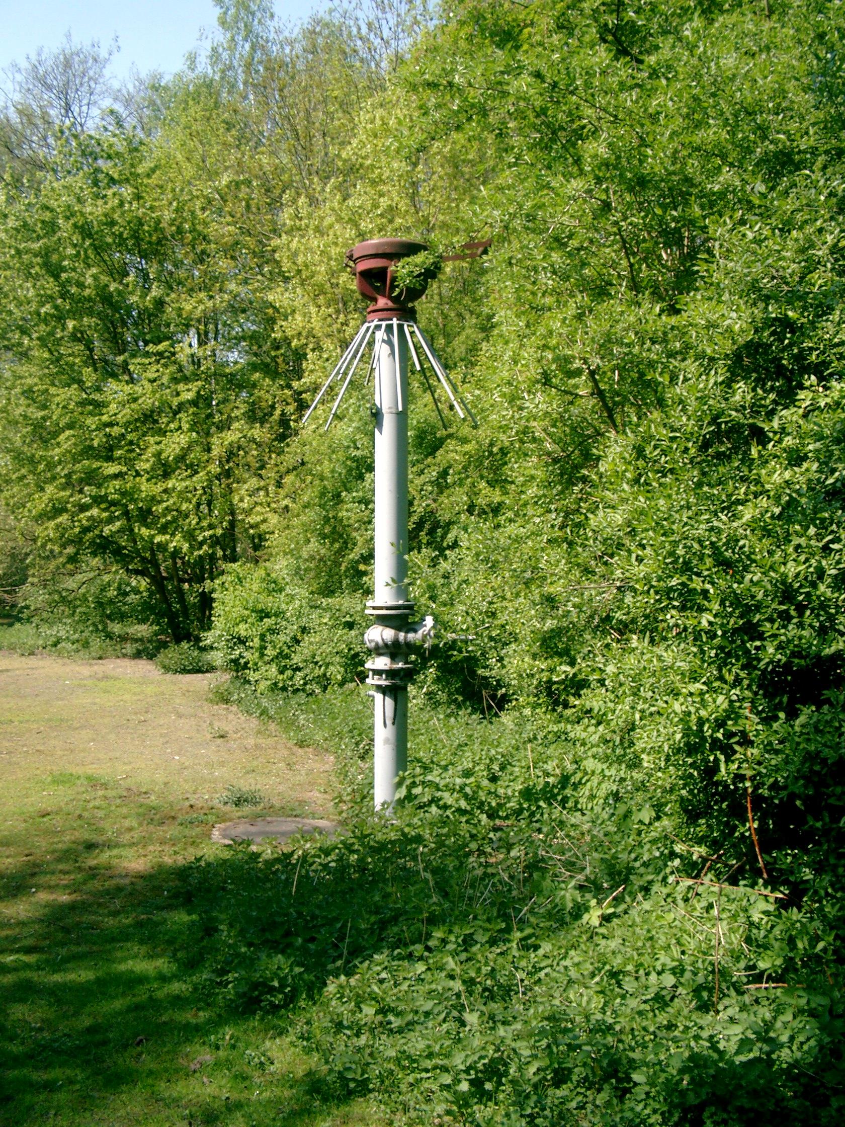 zu finden, der mit einem Rohrstutzen und einer Markierungstafel versehen ist.