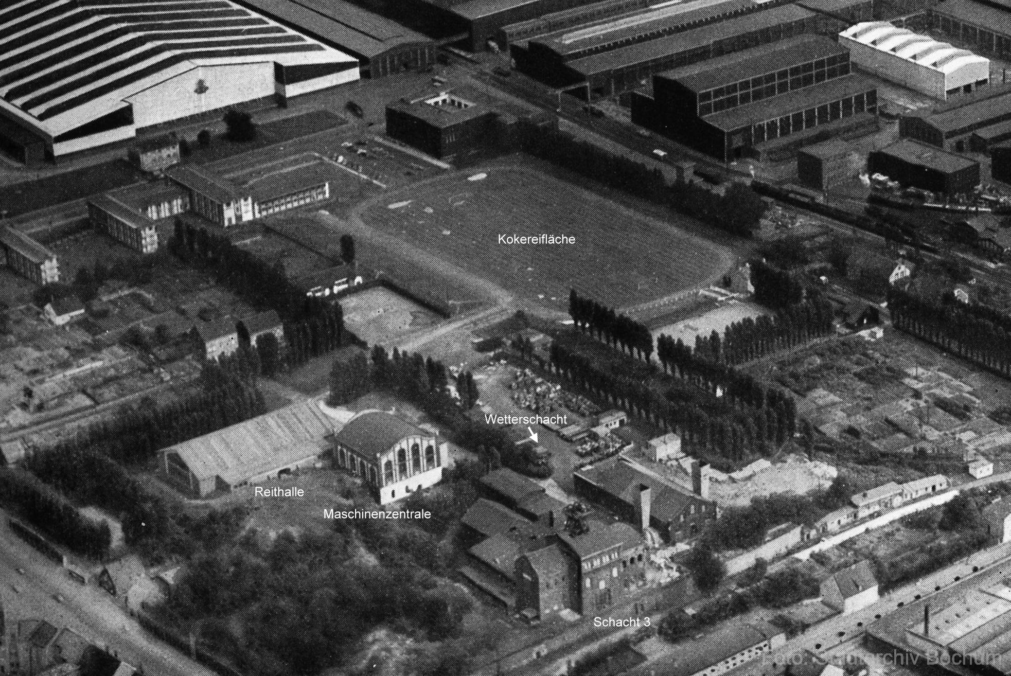Die Anlagen von Schacht 1 und 2 lagen an der Herner Strasse in Bochum-Riemke direkt nördlich der Anschlussstelle