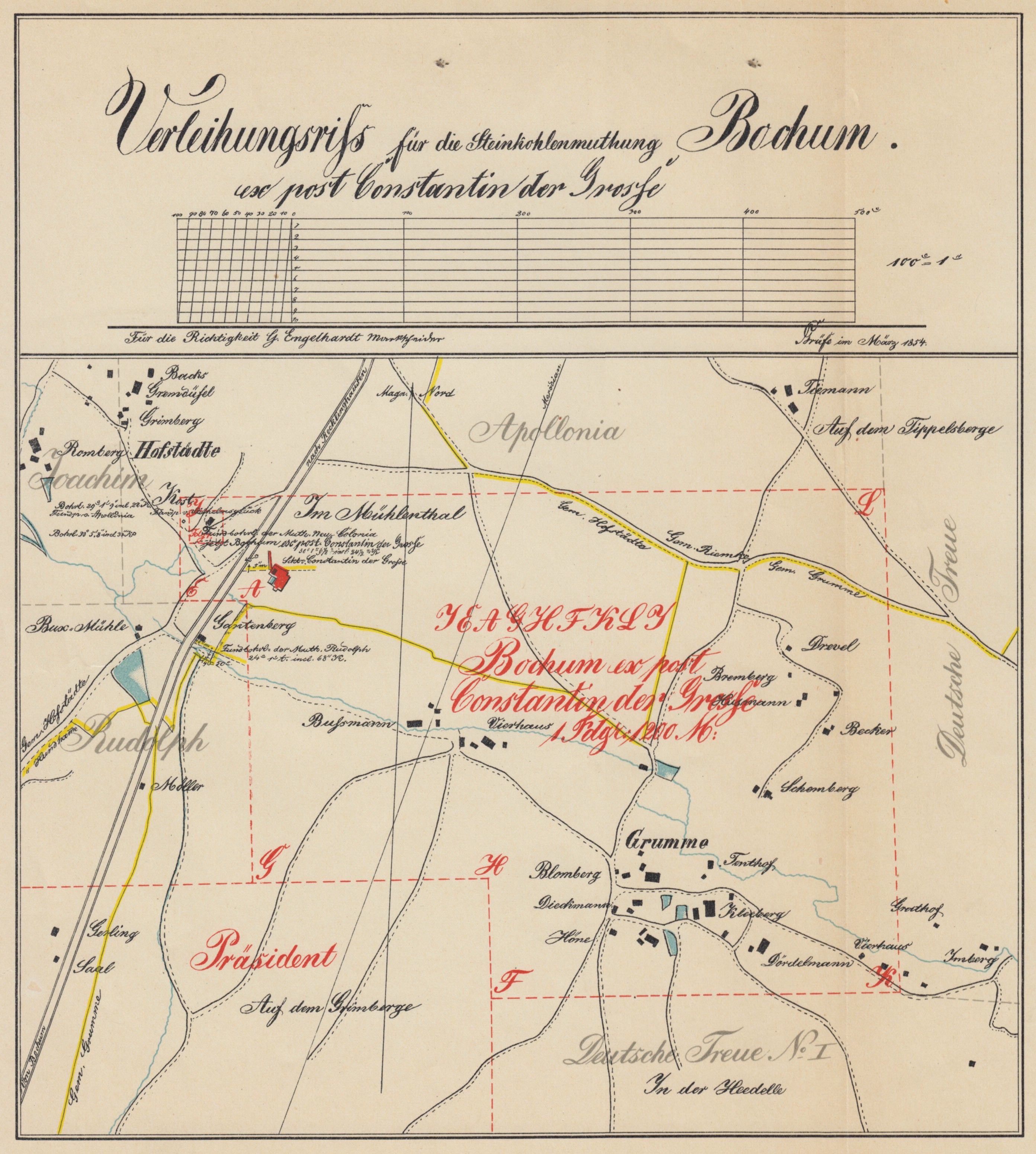 1892. Die Zeche erhielt die Bezeichnung Vereinigte Constantin der Große. Das Grubenfeld reichte nun von der Bochumer Innenstadt bis