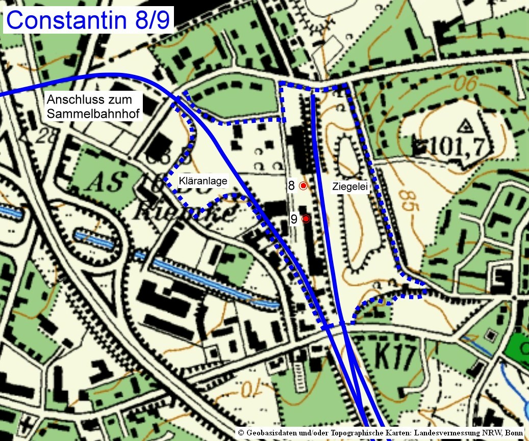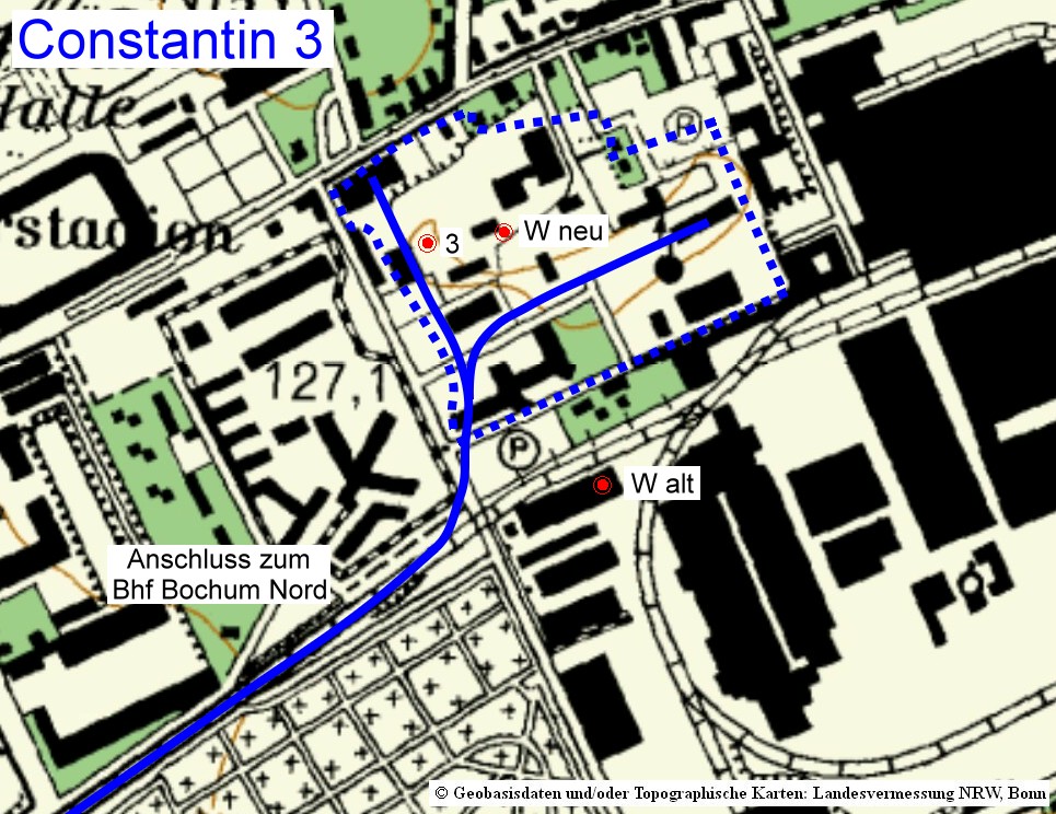 Ladestellen bei Constantin 3 und Constantin 8/9, da hier die Linie nach Herne verlief. Das neu gebaute Anschlussgleis ist auf den