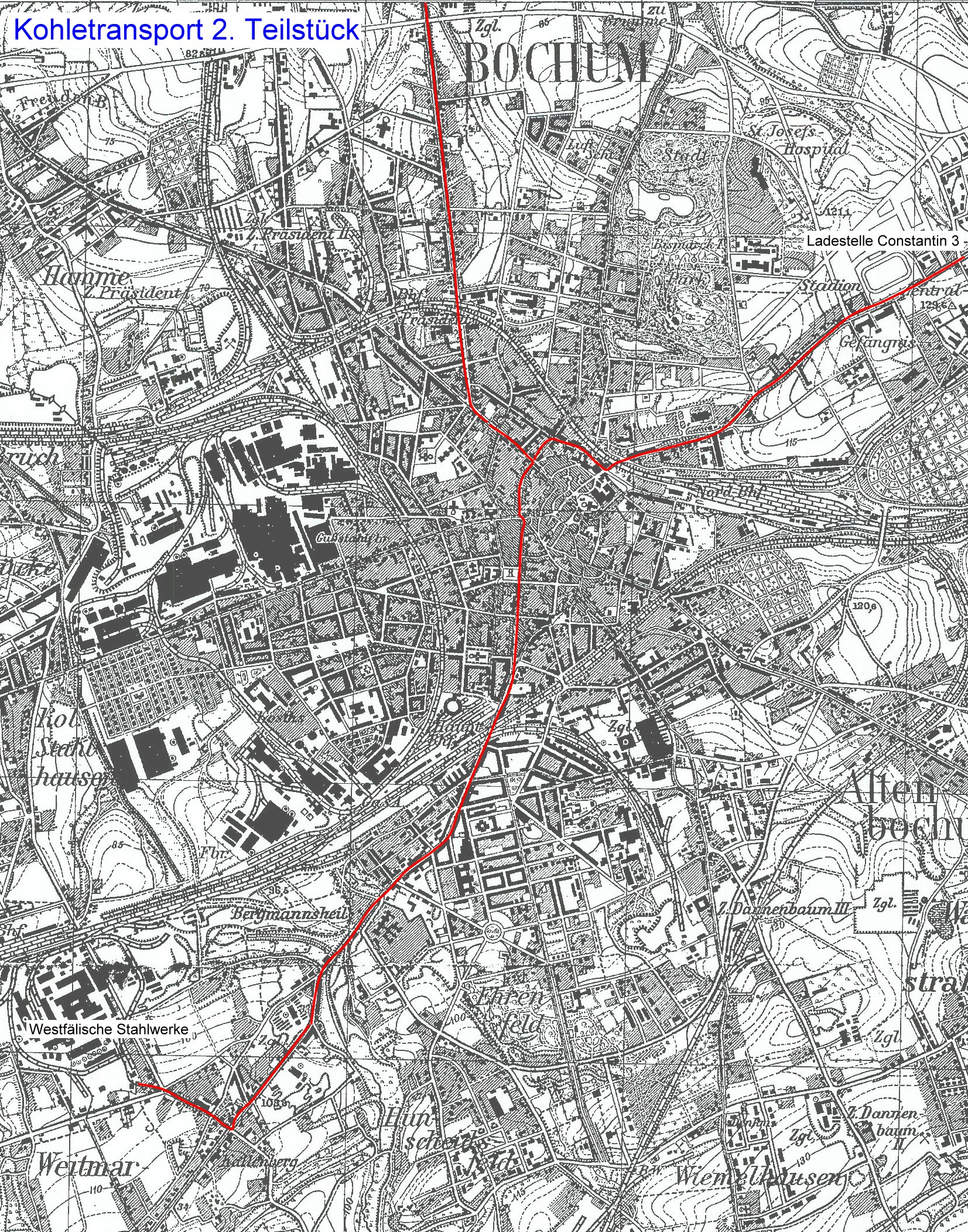 Rombacher Hütte). Der Transportweg war gut 9 km lang und wurde von Bochum Gelsenkirchener Straßenbahn AG durchgeführt. Es gab