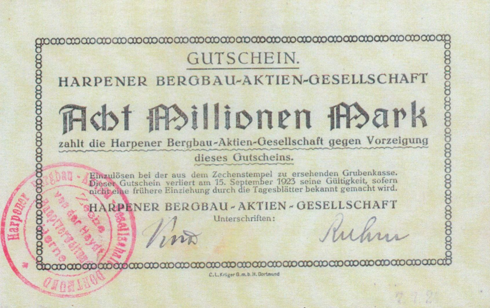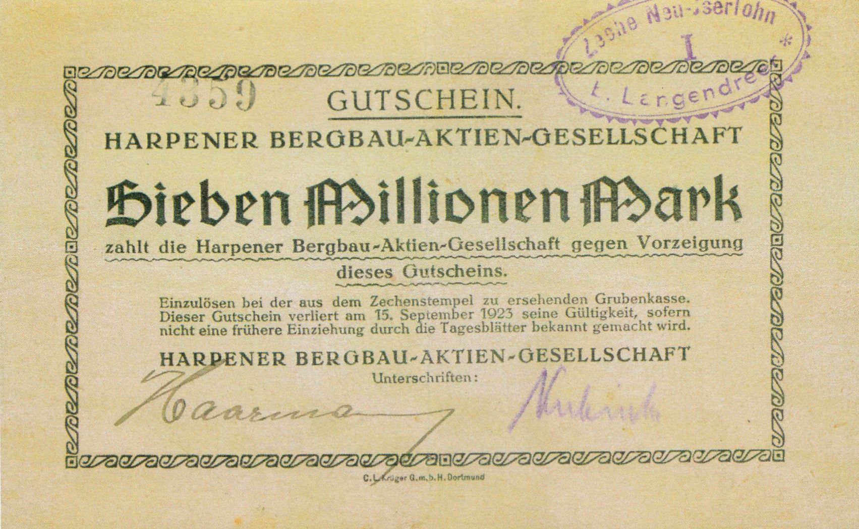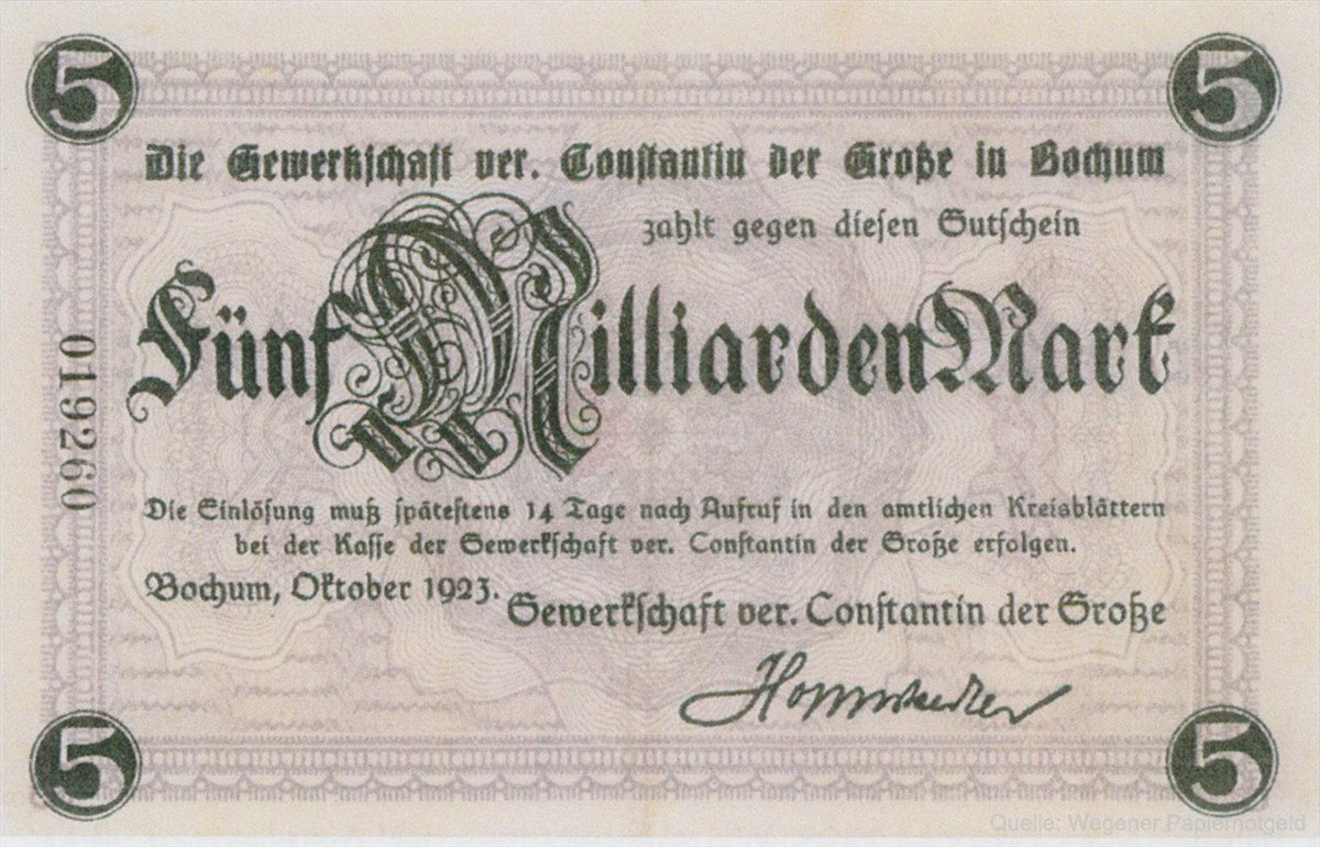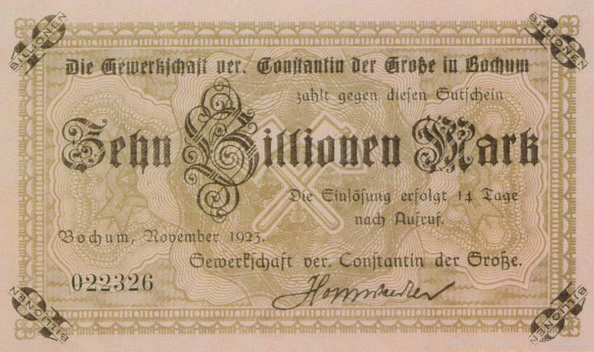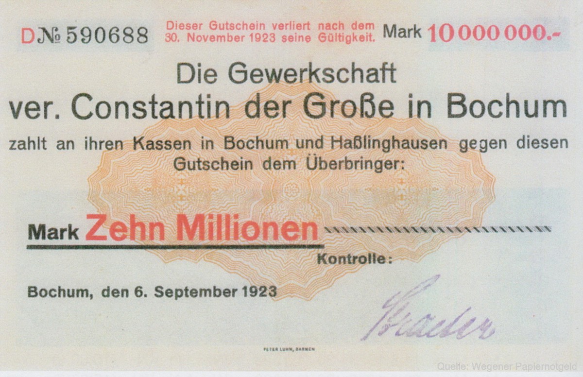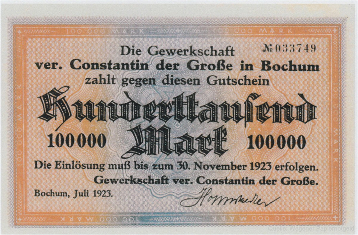 Die Zechengesellschaft Constantin gab in der Inflationszeit ein eigenes Notgeld aus. Dieses Vorgehen war bei größeren Industriebetrieben
