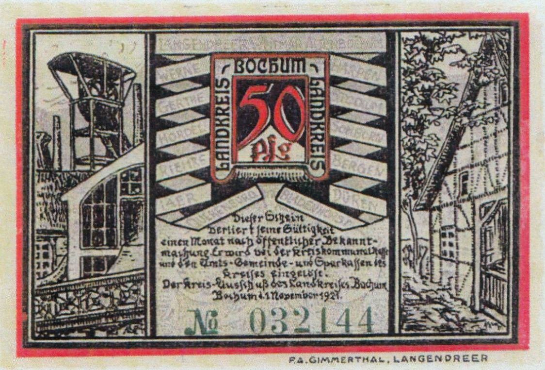 Technisch und künstlerisch recht anspruchslos war das Notgeld im Landkreis Bochum. Es ging auch nur um Kleinbeträge.