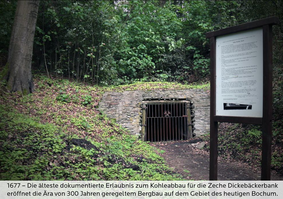 einen Bremsberg auf die Stollensohle gebracht. Das renovierte Stollenmundloch liegt neben der ehemaligen Zeche Dahlhauser Tiefbau.