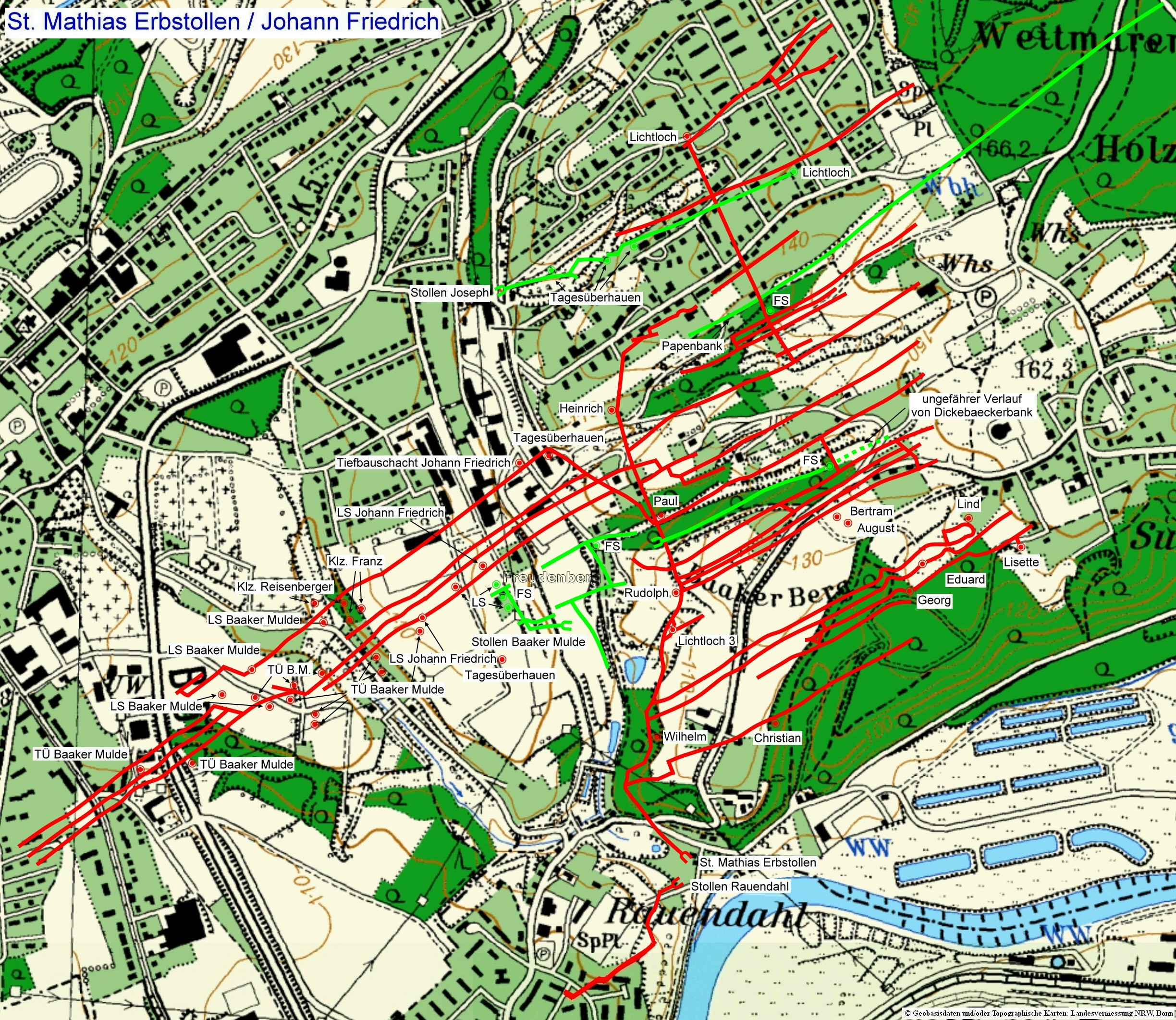 sind alle von der Tiefbauanlage überbaut worden. Zum Teil waren diese Stollenzechen auch aus dem St. Mathias Erbstollen heraus