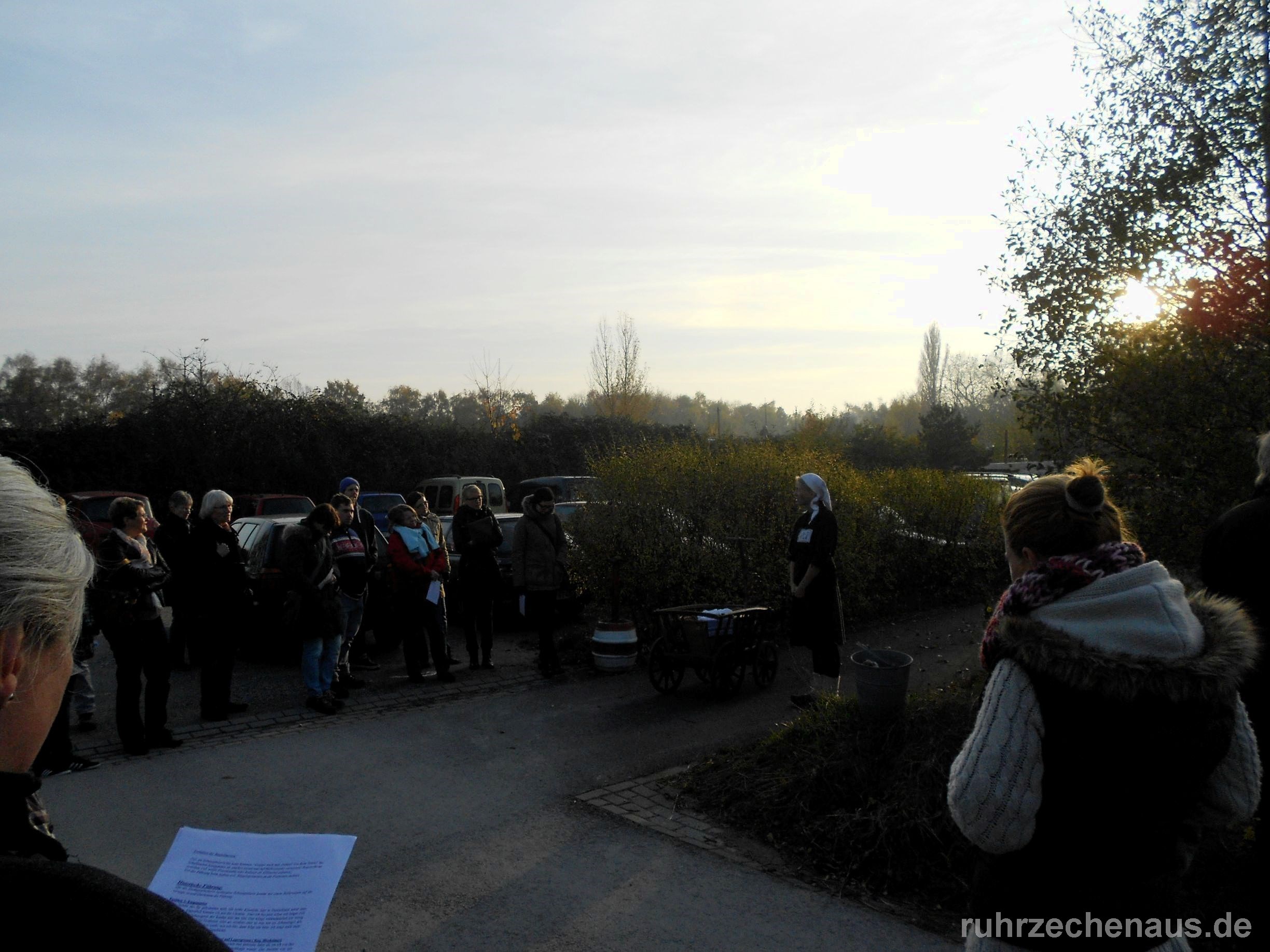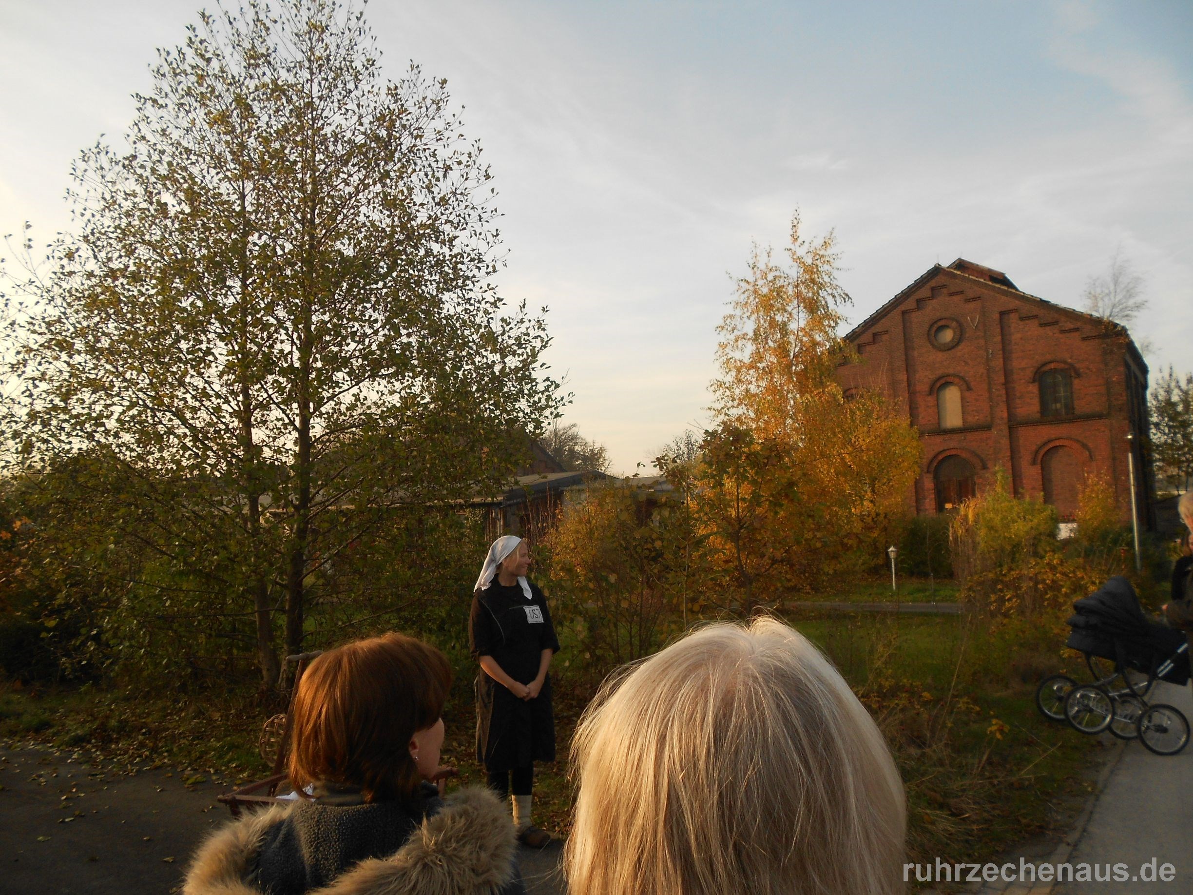 führte als Geist einer bei der Geburt ihres Kindes verstorbenen Zwangsarbeiterin über das Gelände und erzählte dabei ihre Geschichte