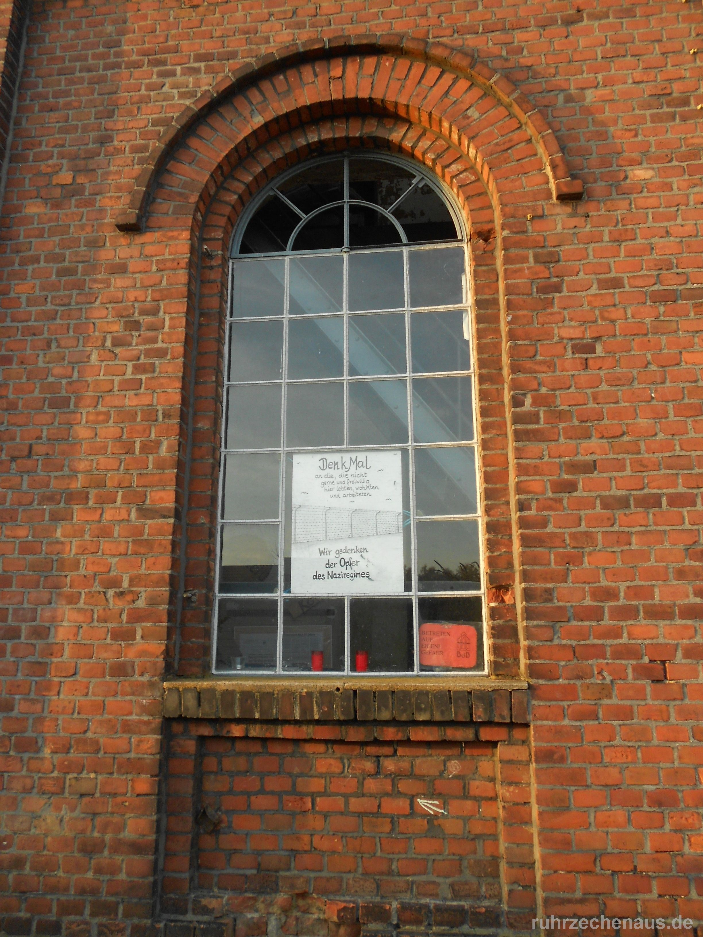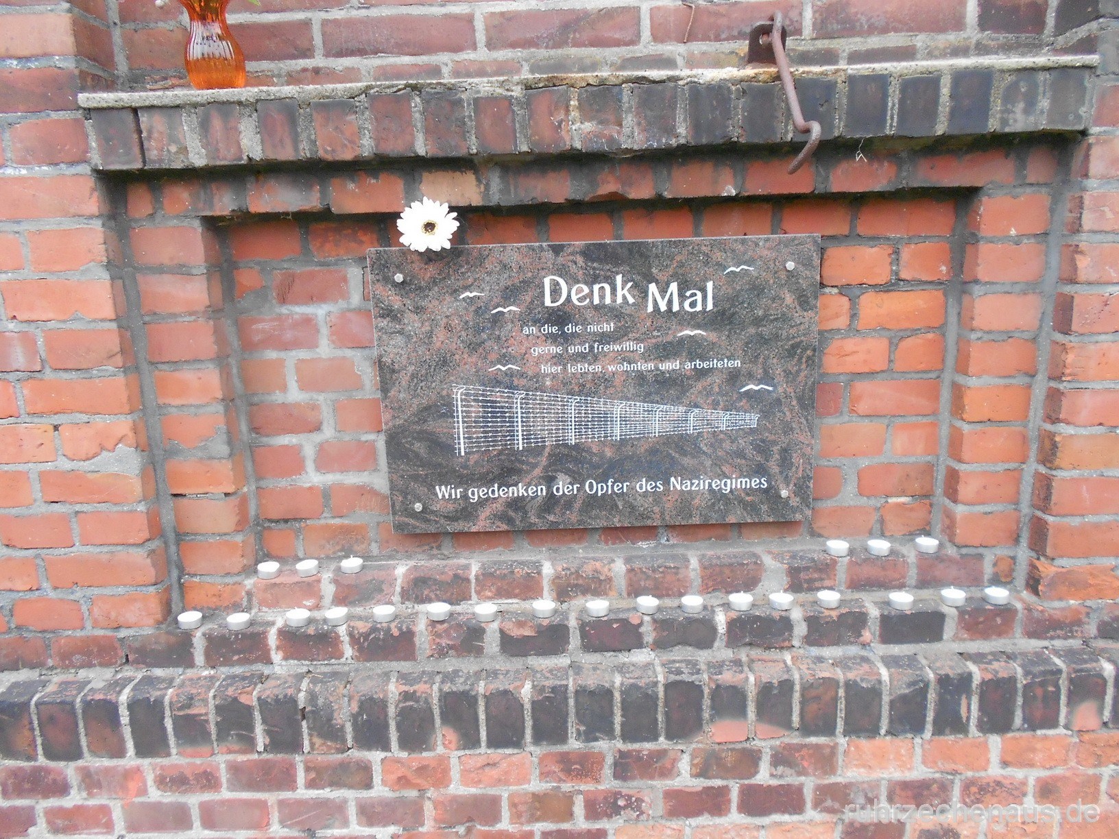 und im ehemaligen Trafohaus (davor Benzolfabrik) informiert eine kleine Ausstellung über die Geschichte des Lagers. Aussen ist