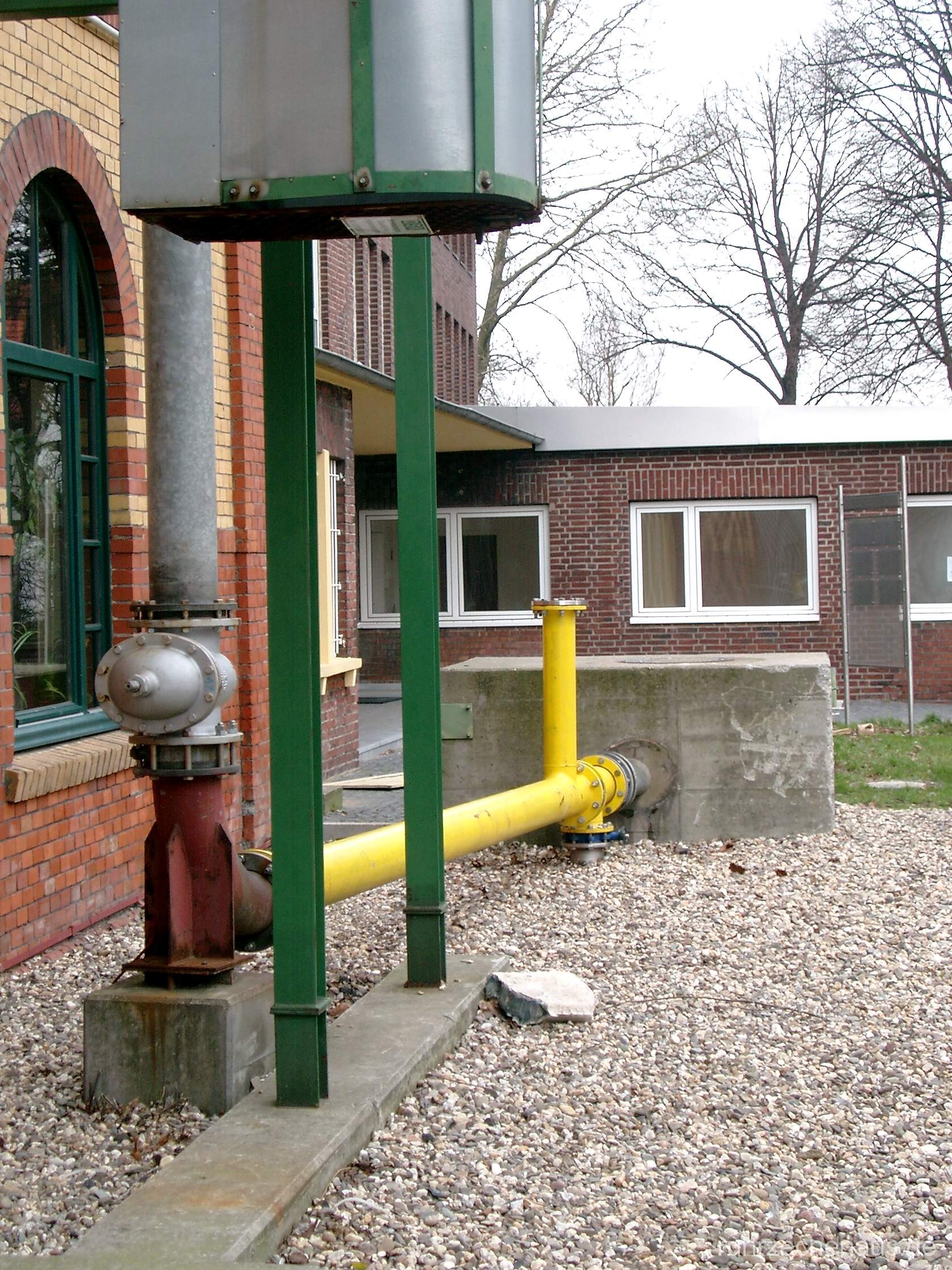 ausgeführt und nur ein Luftschacht betrieben. Der Schacht ist am Revisionsdeckel erkennbar.