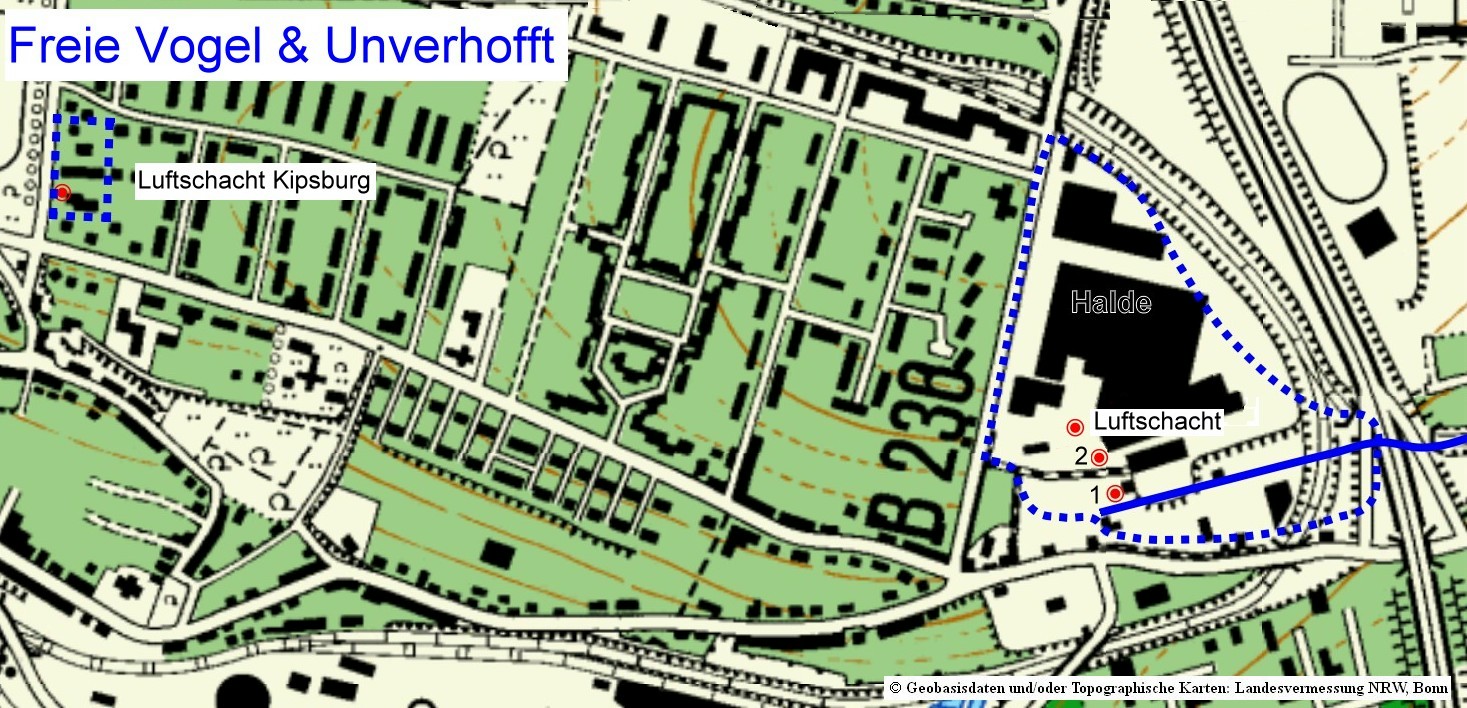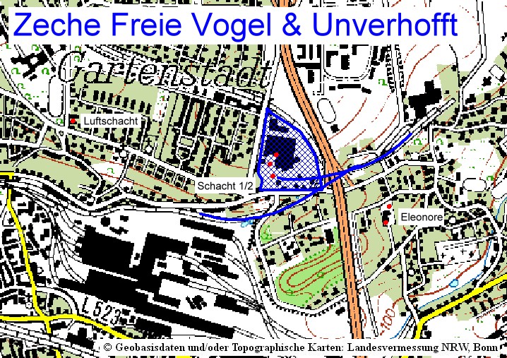 Westlich von Freie Vogel & Unverhofft lag die Zeche Landwehr & Mühlenberg. Diese hatte keine Förderanlage.
