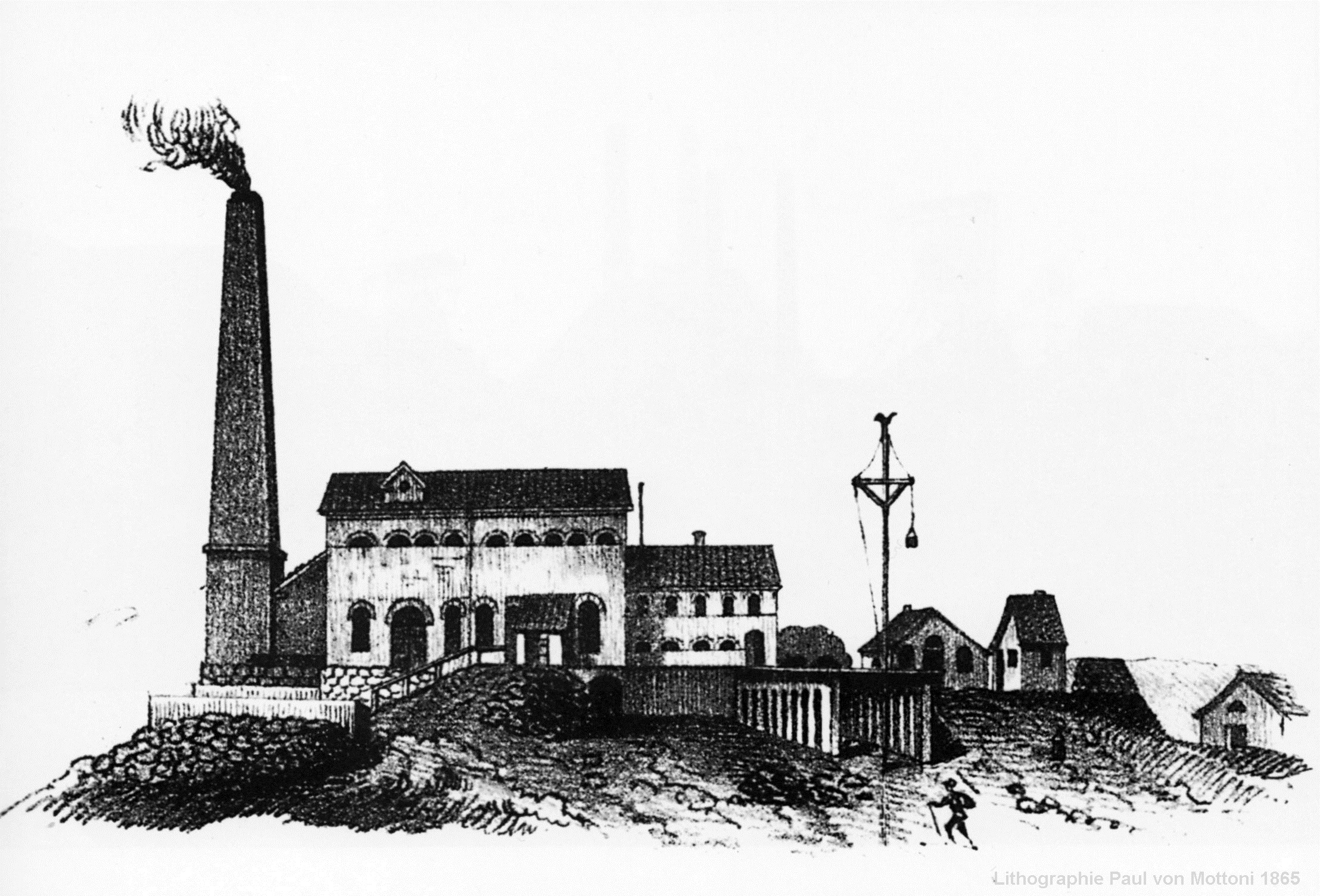 erbohrt worden war. Der Schacht wurde tiefer geteuft und als "alter Schacht" bis 1854 betrieben. 1845 begann nach der Sümpfung