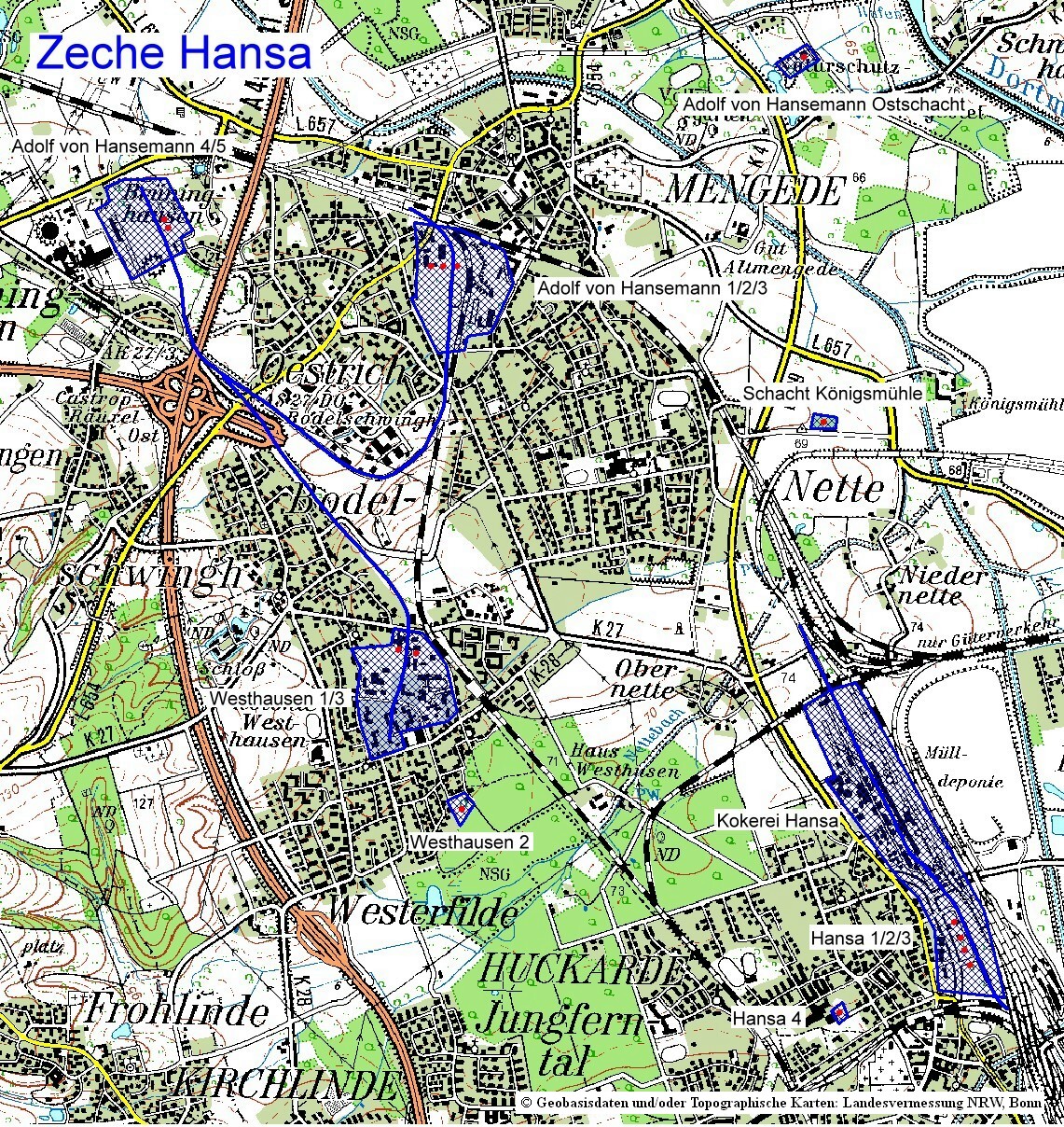 - Schächte Hansa 2 und 3 im Jahr 1986 (Wasserhaltung)