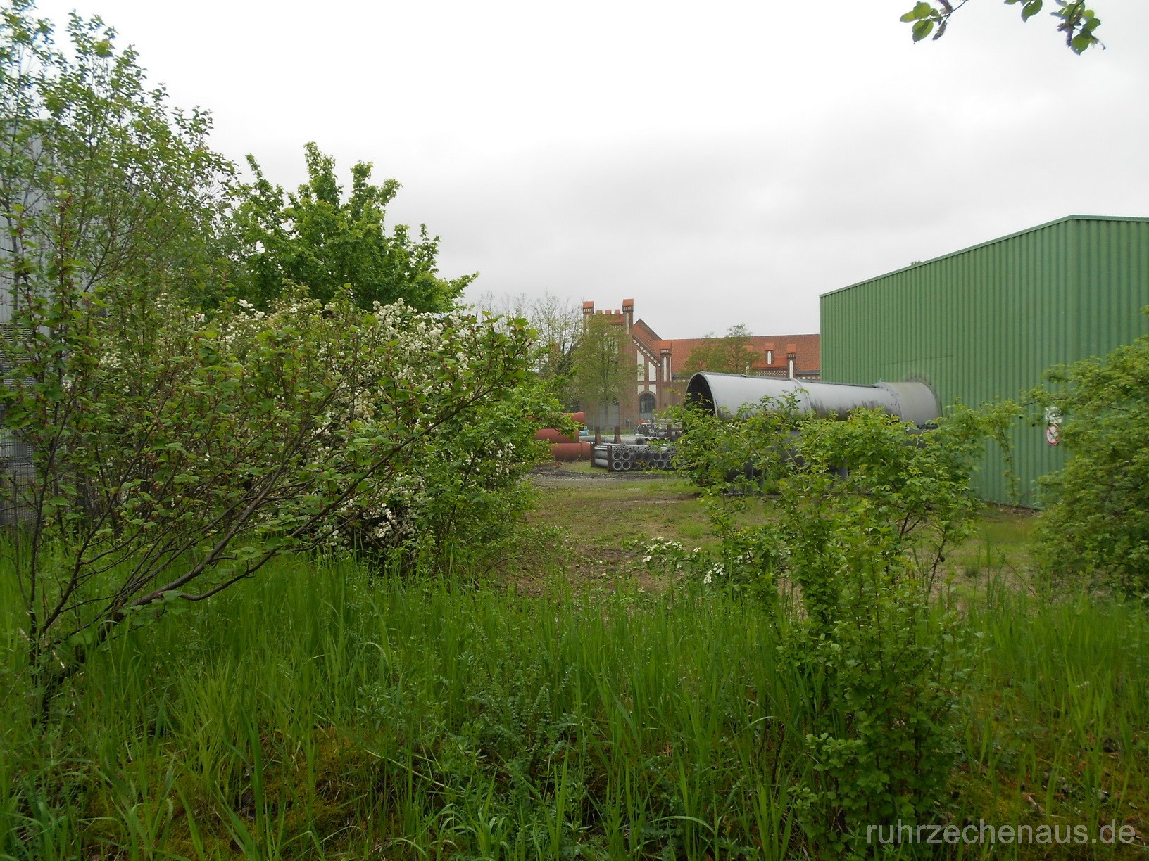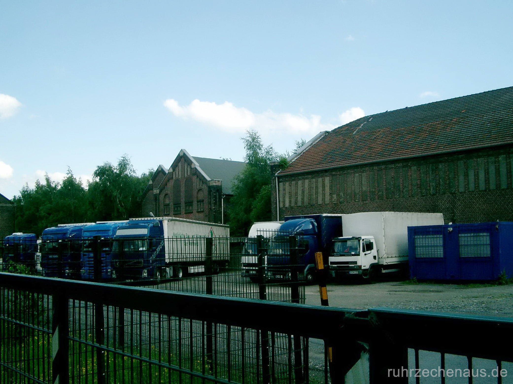 Schacht 3 ist im Betrieb einer Spedition aufgegangen. Nur noch die Betonabdeckung des Schachts und das Fördermaschinengebäude deuten
