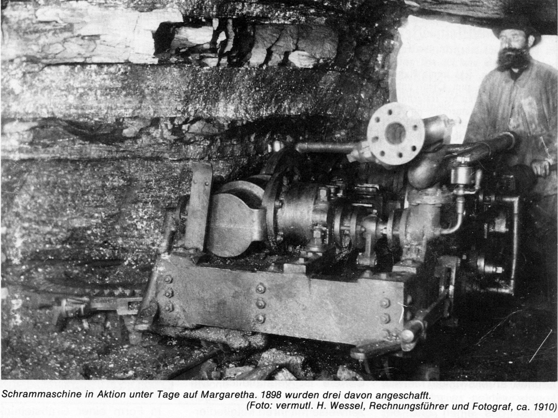 werden. Nach Anfangsschwierigkeiten entwickelte sich die Zeche gut. Abzulesen ist dies auch durch Einsatz neuer Techniken, 1905 Radschrämmaschinen