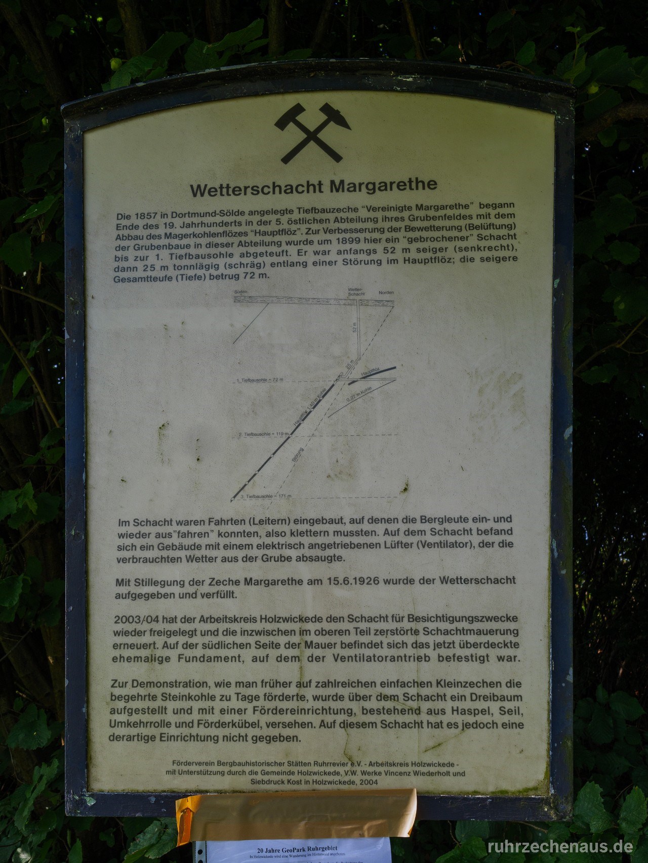 Die Zeche Margarethe lag am Südrand des flözführenden Karbons. Bevor die Tiefbauanlage abgeteuft wurde gab es eine