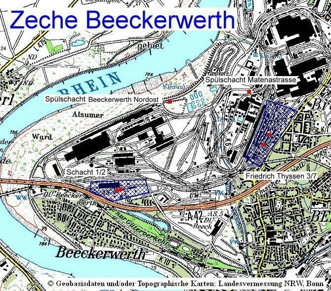Die Schachtanlage lag ungünstig in einer Rheinschleife, da der Kohleabbau mit den resultierenden Bergsenkungen