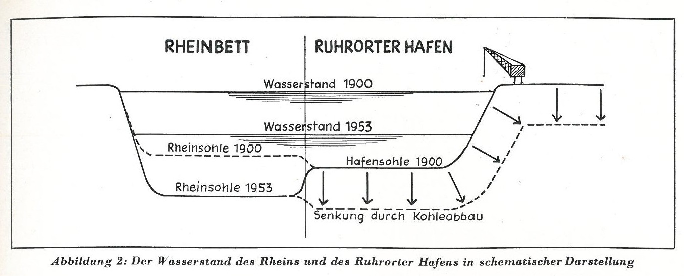 Ruhrorter Häfen Kohle abgebaut, da sich die Rheinsohle gesenkt hatte. Eine Vertiefung der Hafenanlagen wäre sehr teuer geworden und ab