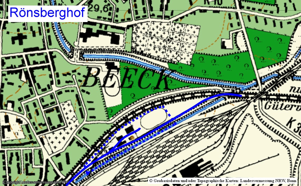 innerhalb eines Werkgeländes und ist teilweise überbaut worden.