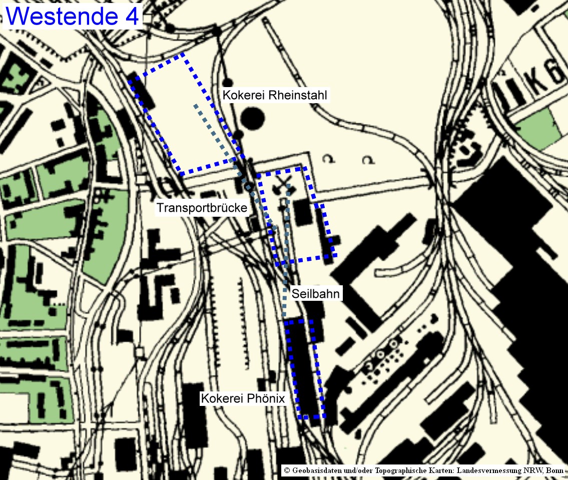 Kokerei von Rheinstahl war mit einer Transportbrücke angeschlossen, die von Phönix mit einer kurzen Seilbahn.