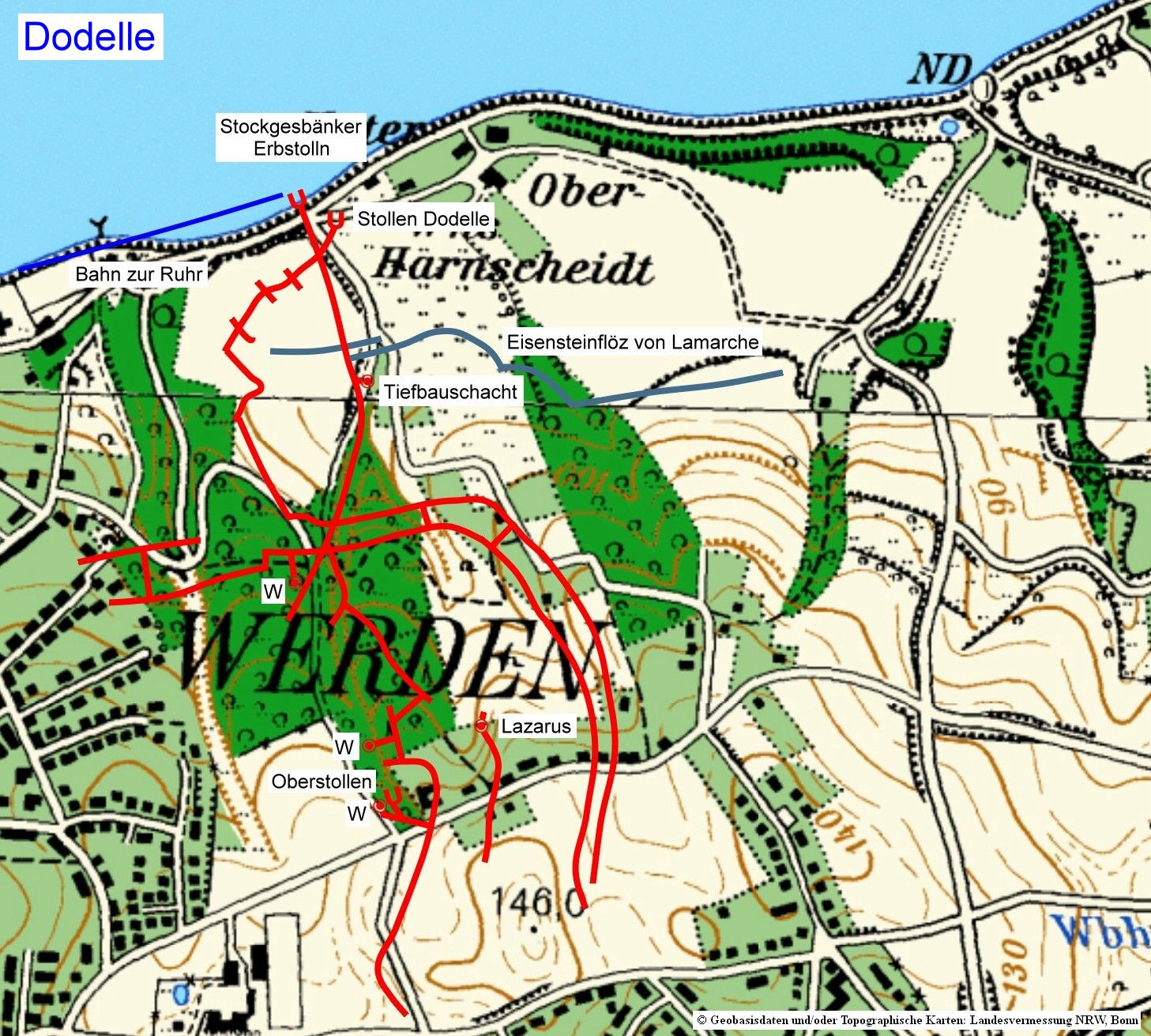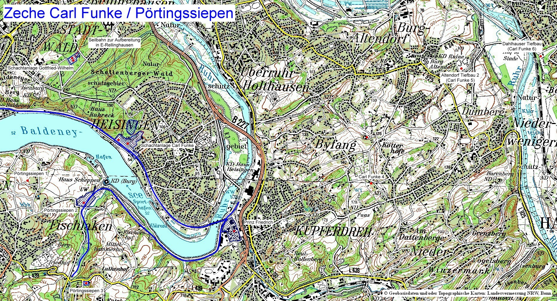 Struktur wird auch in der Lage der Schächte abgebildet. Vom Schacht Pörtingssiepen 2 bis Dahlhauser Tiefbau 2 liegen diese alle in einer