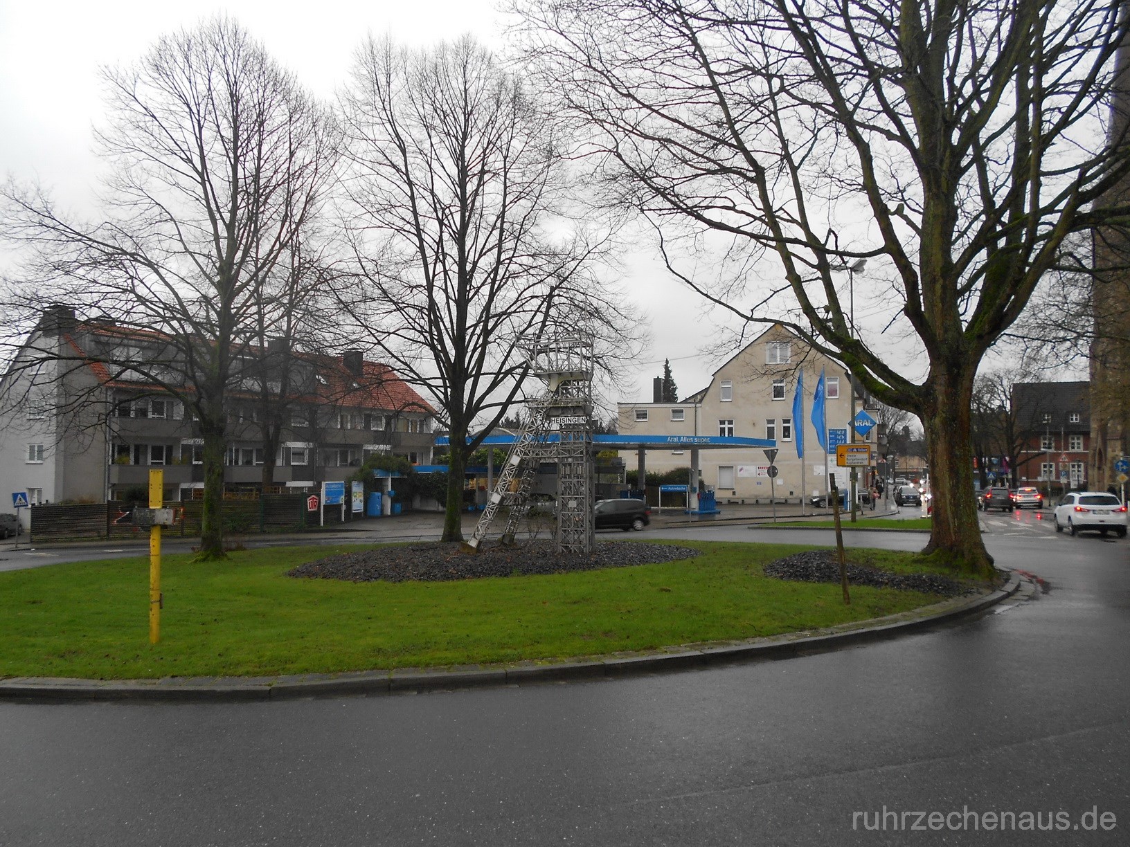 - Modell von Schacht 1 auf einer Verkehrsinsel in Essen-Heisingen