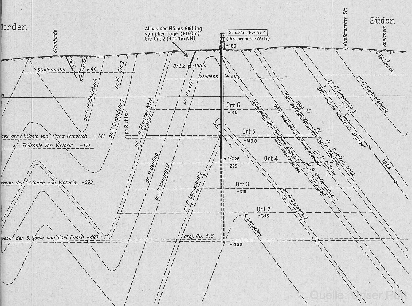 - Lagerung der Flöze am Schacht Carl Funke 4