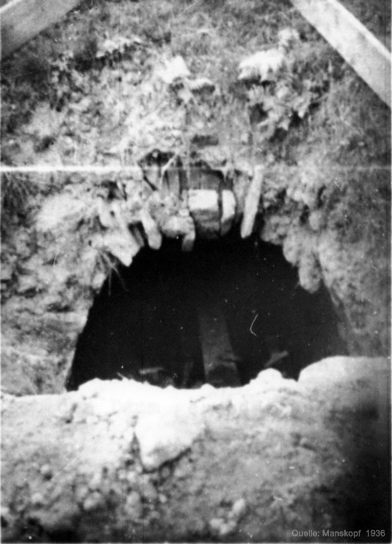 - Im Schurfgraben angeschnittener Maasstollen