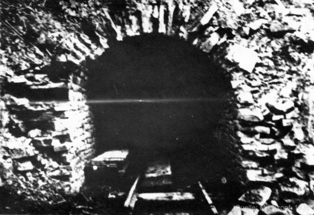befand sich hinter dem Gebäude im Hang und reichte bis zum tonnlägigen Förderschacht im Flöz. Dieser war ca. 200 m lang.