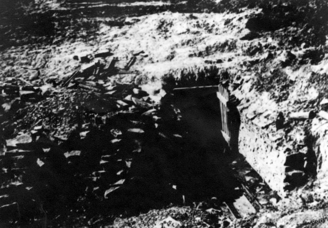 lag, soweit festzustellen war, ganz zu Bruch. Hier reichte es den Stollen durch einen einen Meter starken Betondamm abzuschließen.