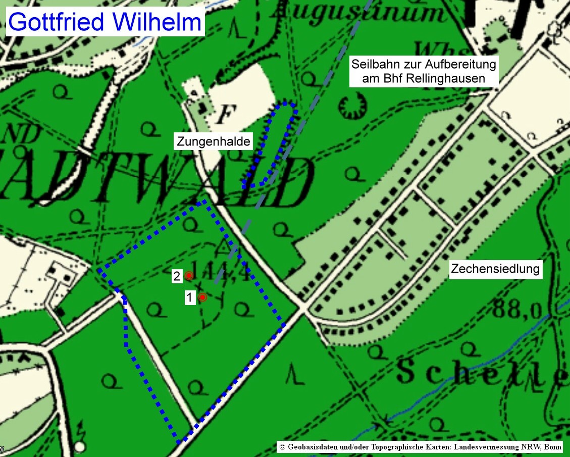 Wetter- und Pumpenschacht (2 x 2 m). Nach dem Förderbeginn im Schacht Carl Funke 1 bekam der Schacht einen elektrischen