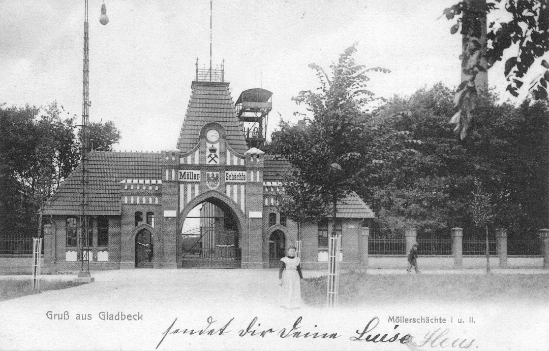 1902 kaufte der preussische Staat die Schachtanlage Vereinigte Gladbeck. Die Schächte 1/2 erhielten den Namen Möller