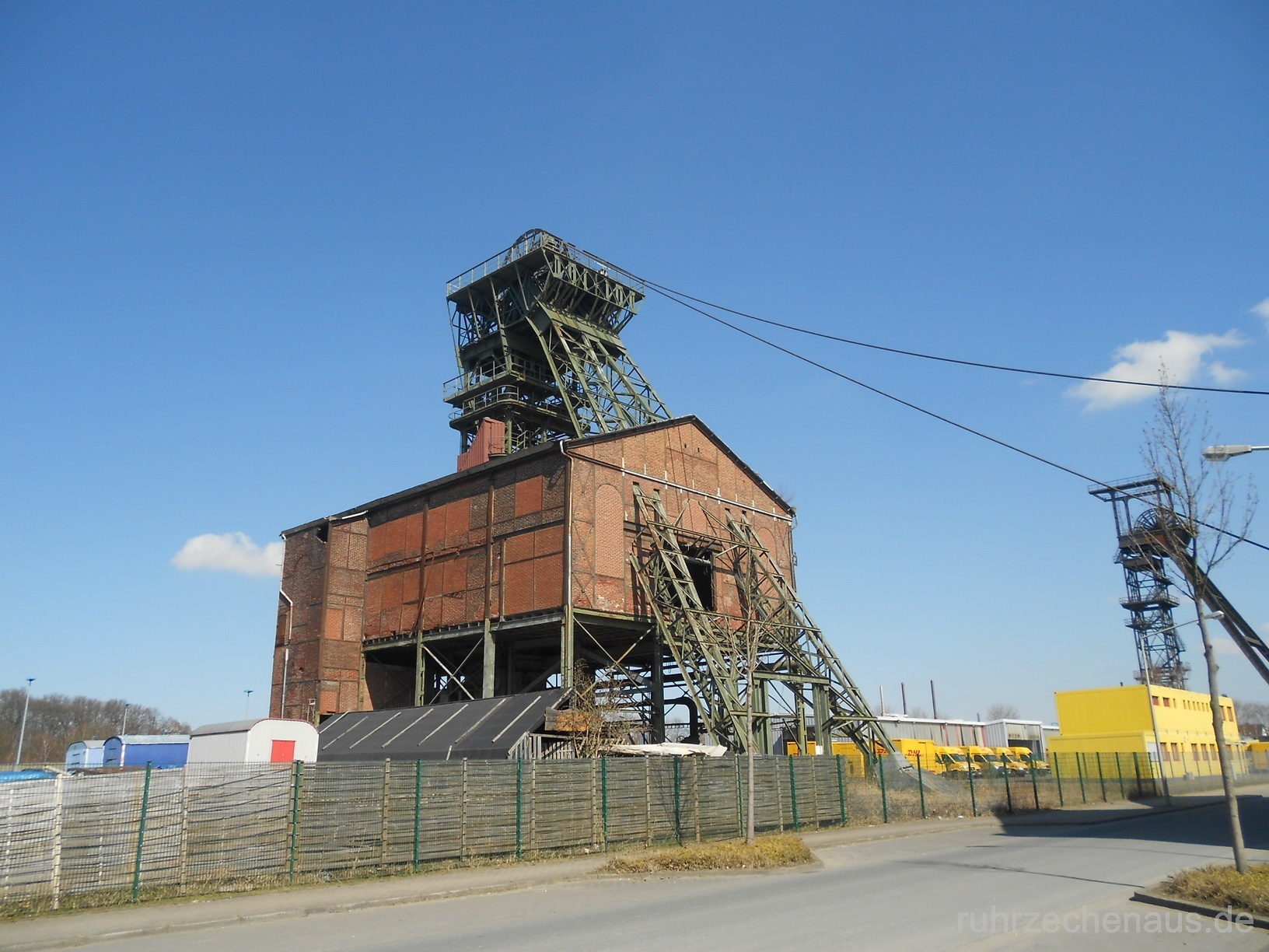 Die Strebengerüste der Schächte 1 und 2 sind mit den Schachthallen erhalten, ebenso das Gerüst des später geteufte Hauptförderschacht 5.