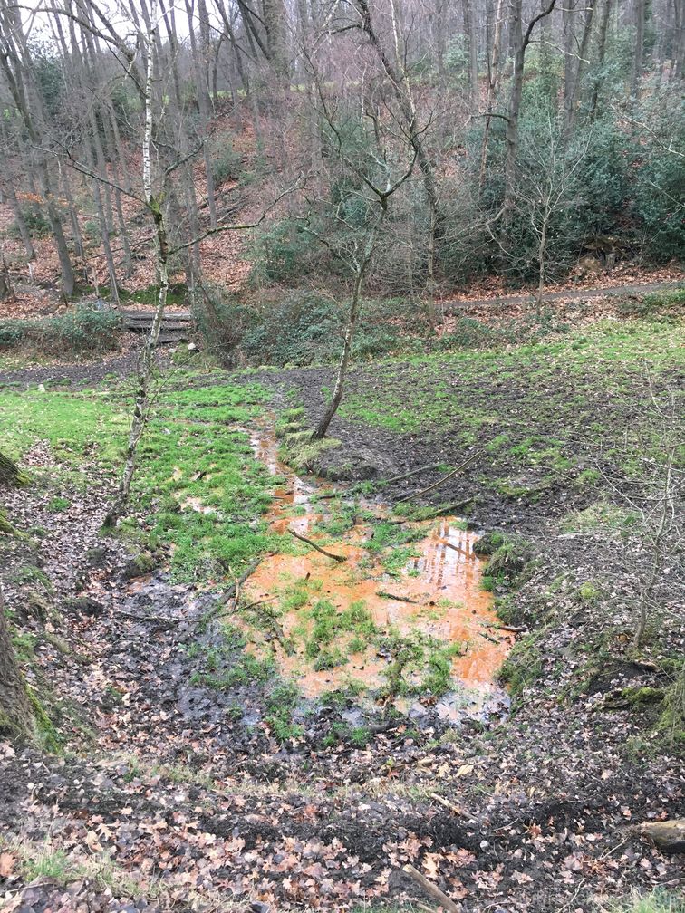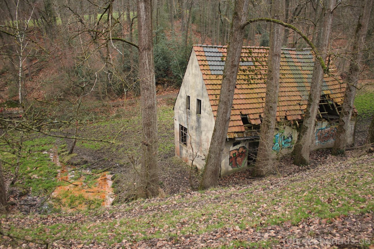 Heute steht noch ein stark verfallenes Zechengebäude neben dem verbrochenen Stollenmundloch. Erkennbar ist es an der Vernässung