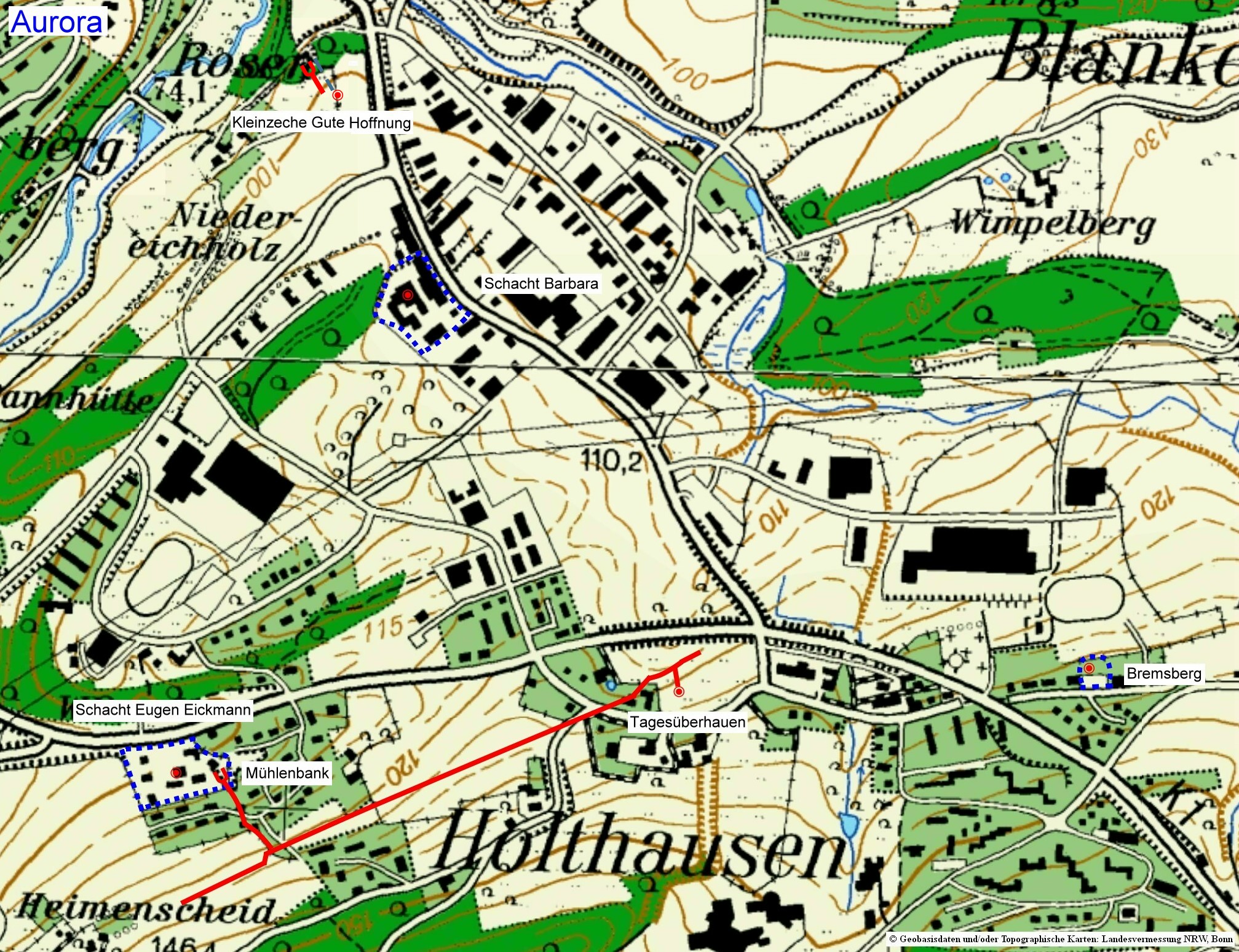 Das Feld dieser Zeche (damals fast nur Längenfelder entsprechend dem Flözverlauf gestreckt) lag direkt neben