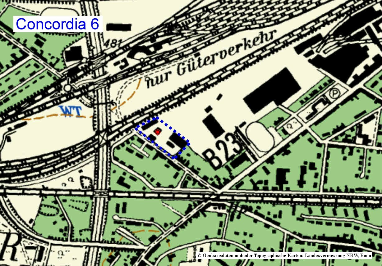 Schacht 1 wurde direkt am Oberhausener Hauptbahnhof abgeteuft. Die Schächte 2 und 3 liegen auch noch sehr