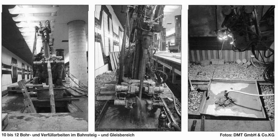 von 350 m östlich der Haltestelle wurden in etwa 30 m Tiefe mindestens sieben, mehrere Tausend Kubikmeter große Hohlräume angetroffen.