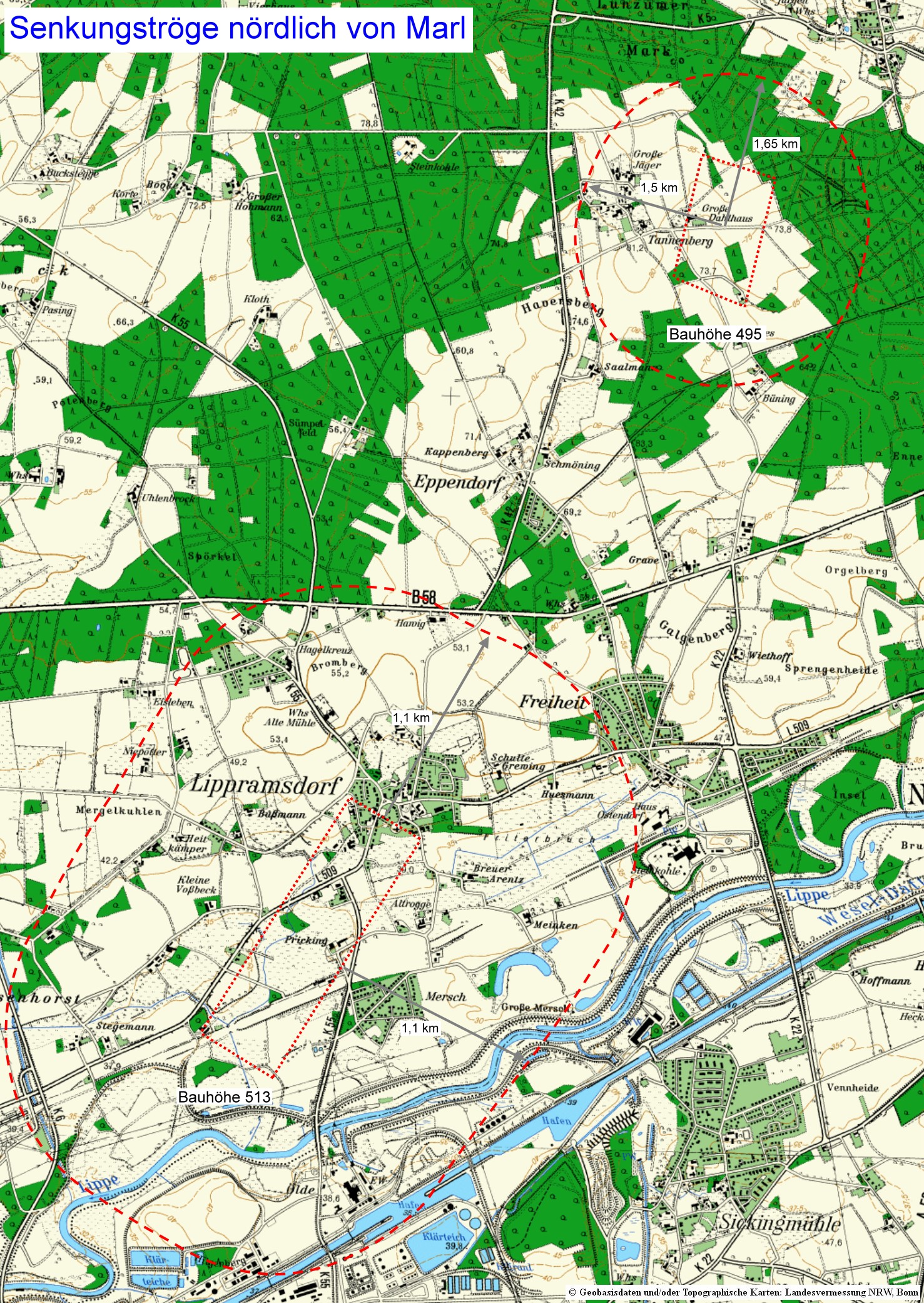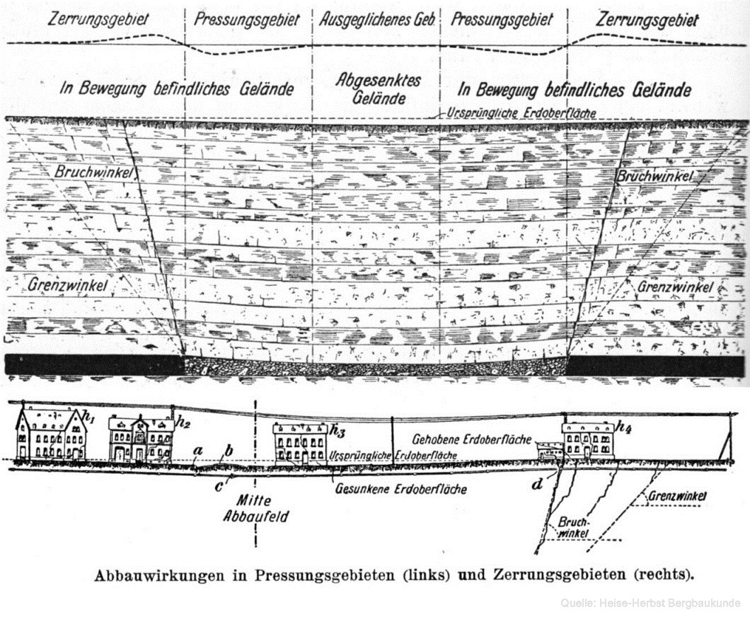 gelagerten Flözen und bei der ordentlichen Verfüllung der Schächte. Einige Tagesbrüche sind eine Folge von Baugenehmigungen, die