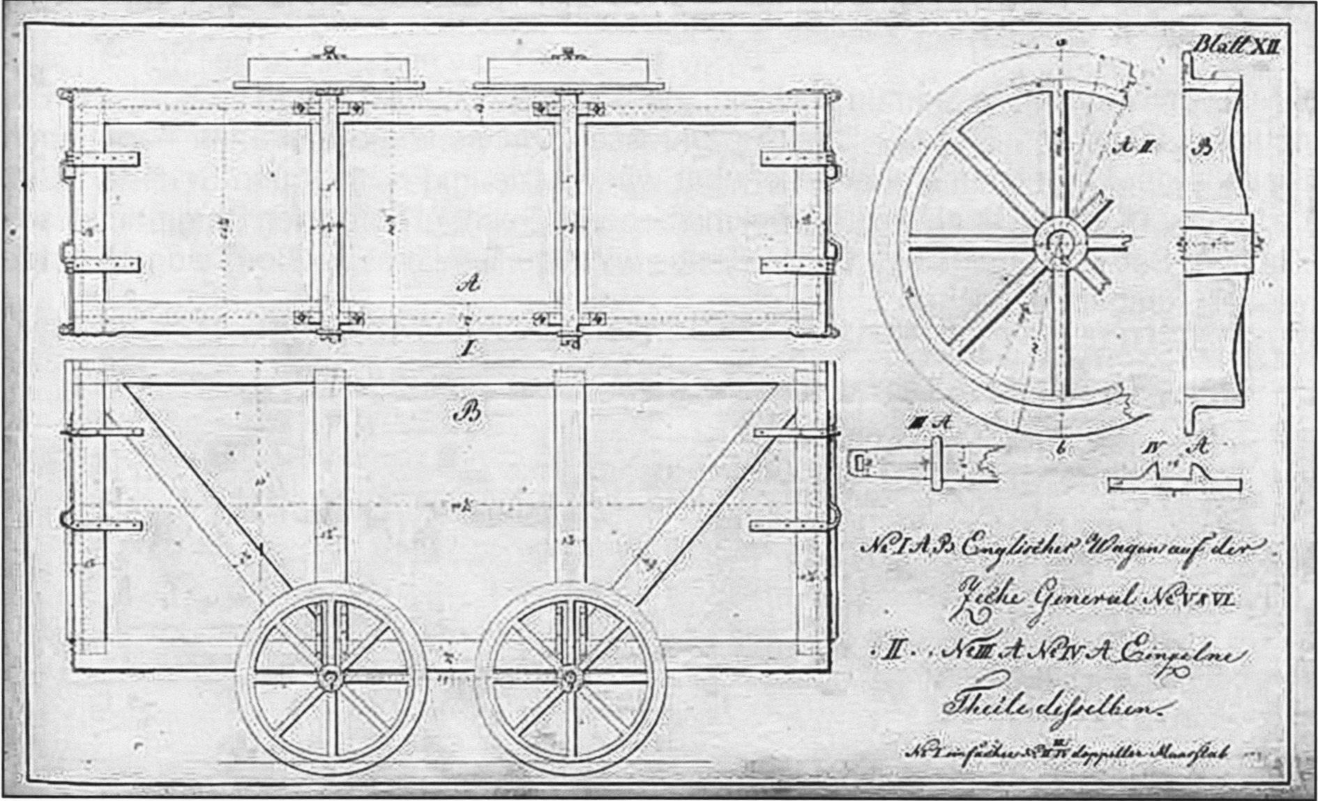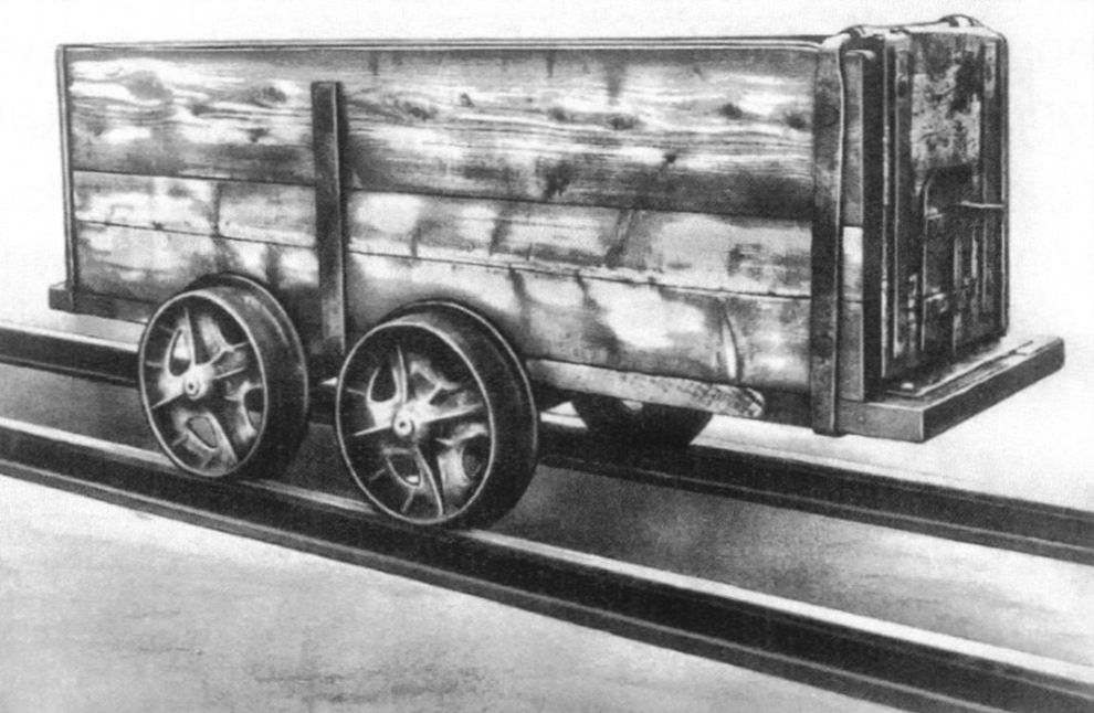 verlegt und Förderwagen eingesetzt. Die Schienen waren zuerst aus Holz, später mit Blechbeschlägen und danach aus Eisen.