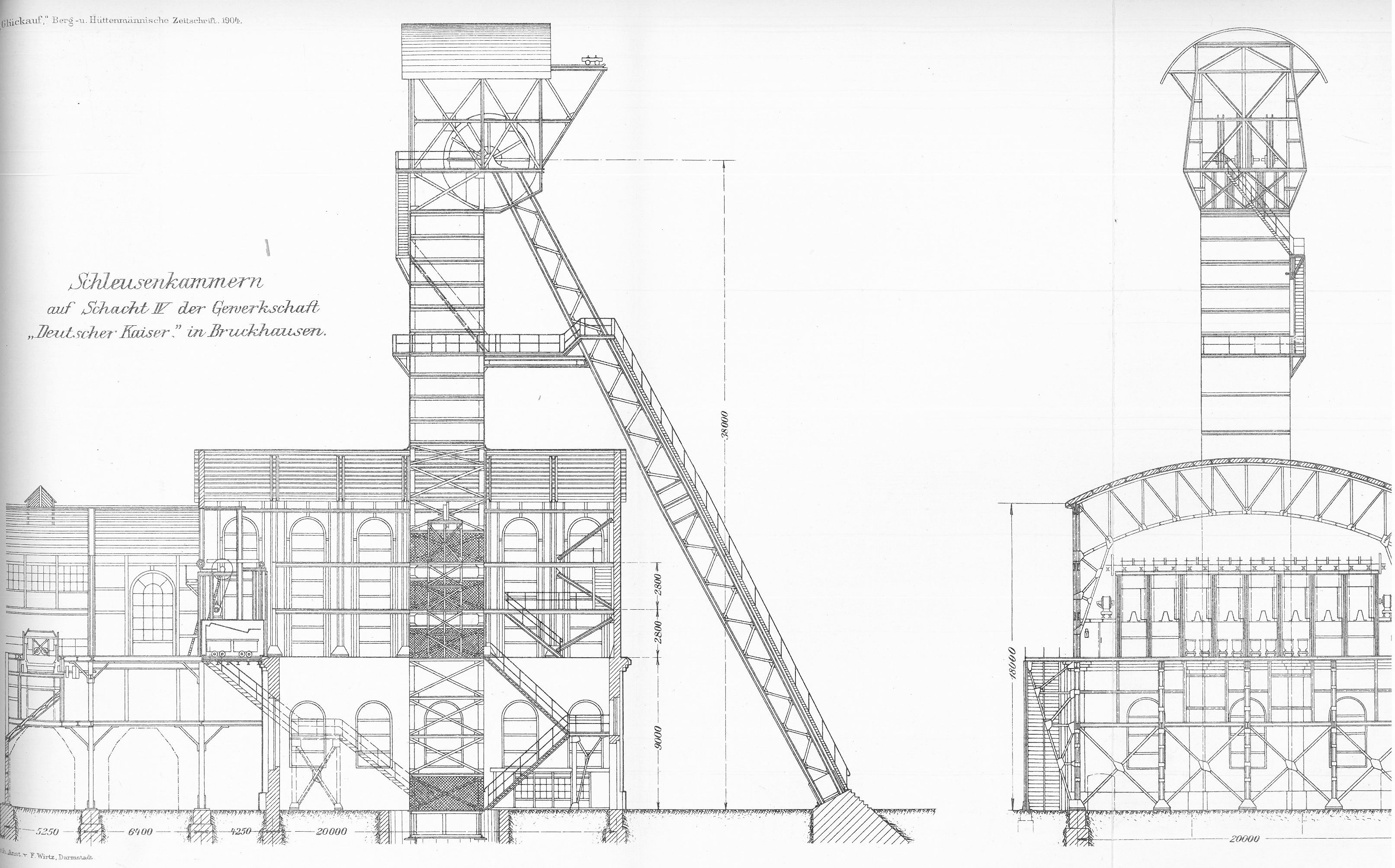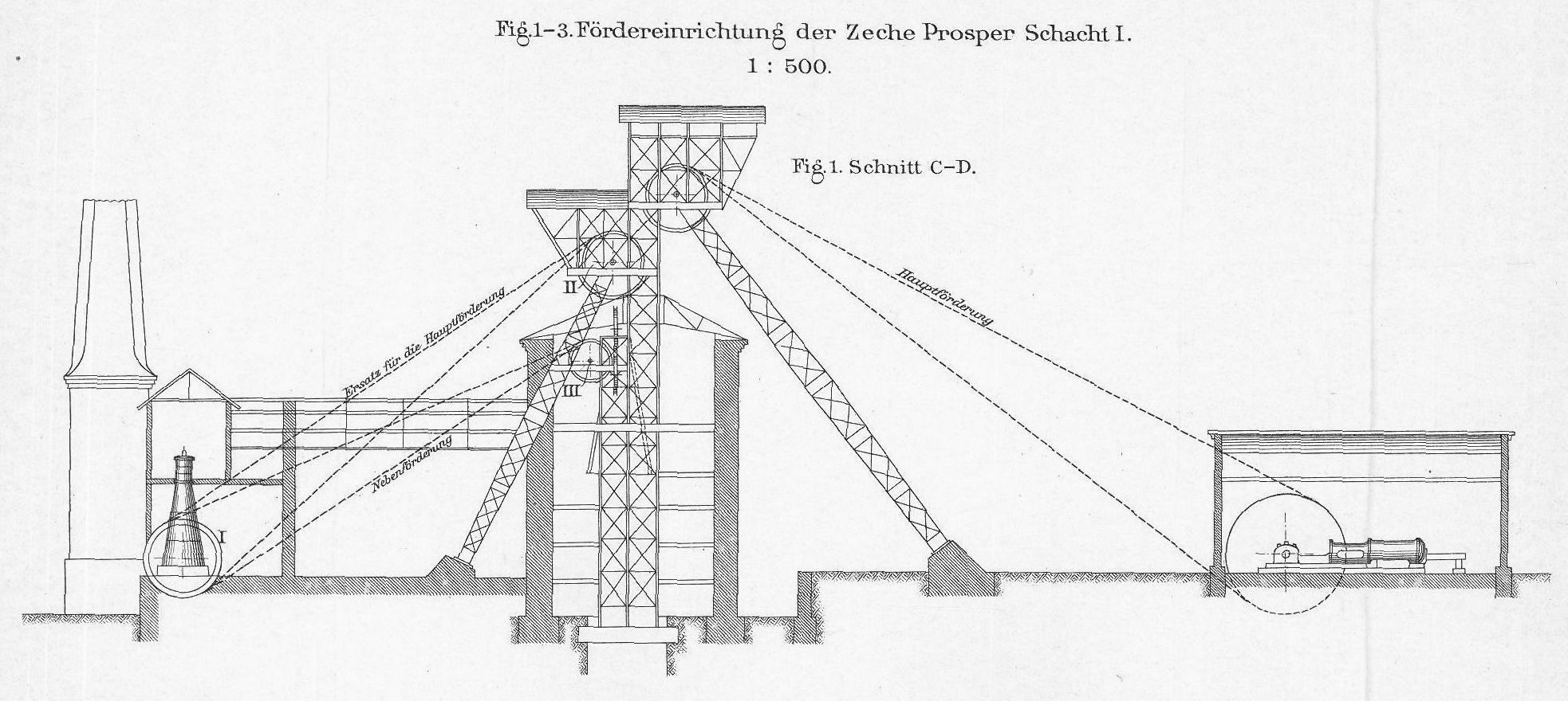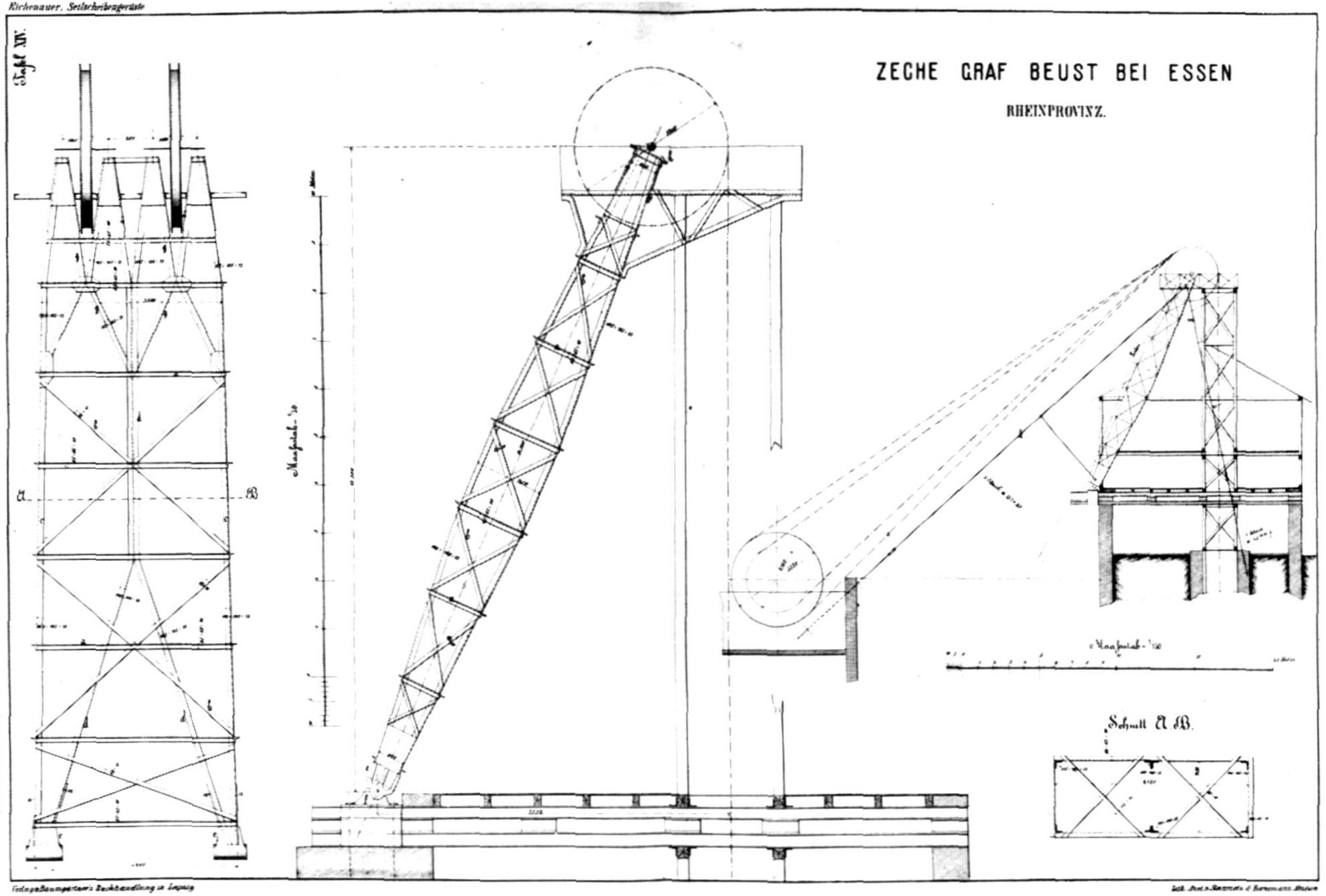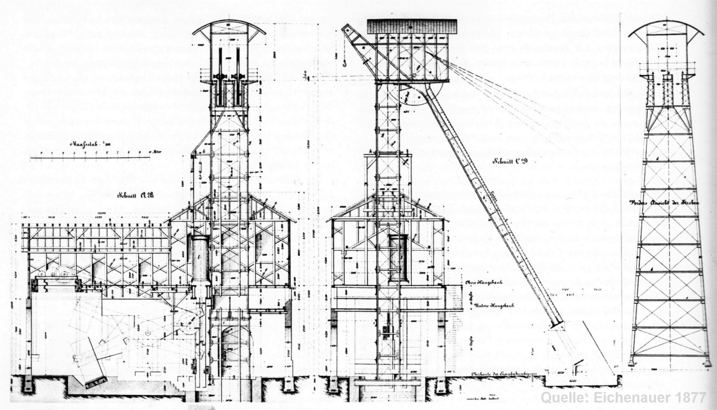 Das bei Prosper erkennbare Prinzip ist dann beim Schacht 6 der Zeche Zollverein (Förderbeginn 1897)