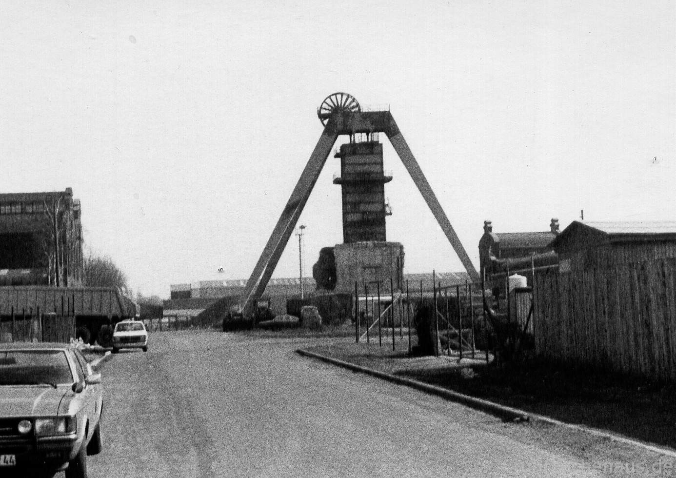 Vollwandstrebe konstruiert. Üblich war damals die Fachwerkbauweise. Unter dem Gerüst steht die Schachthalle.