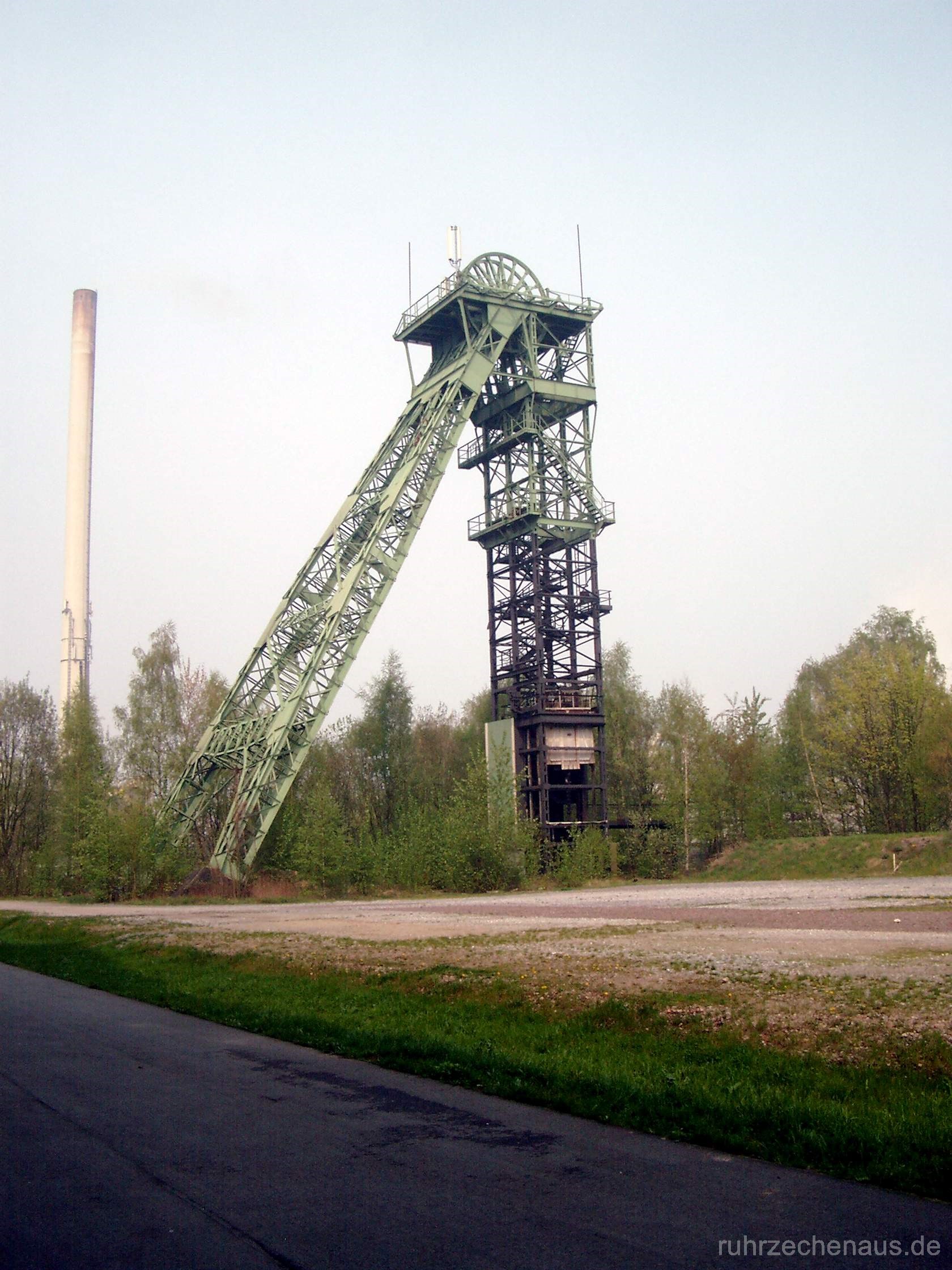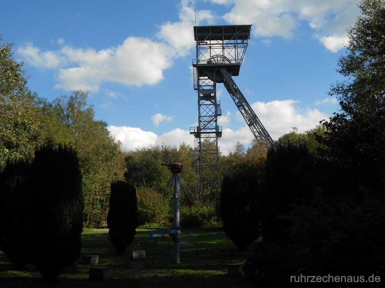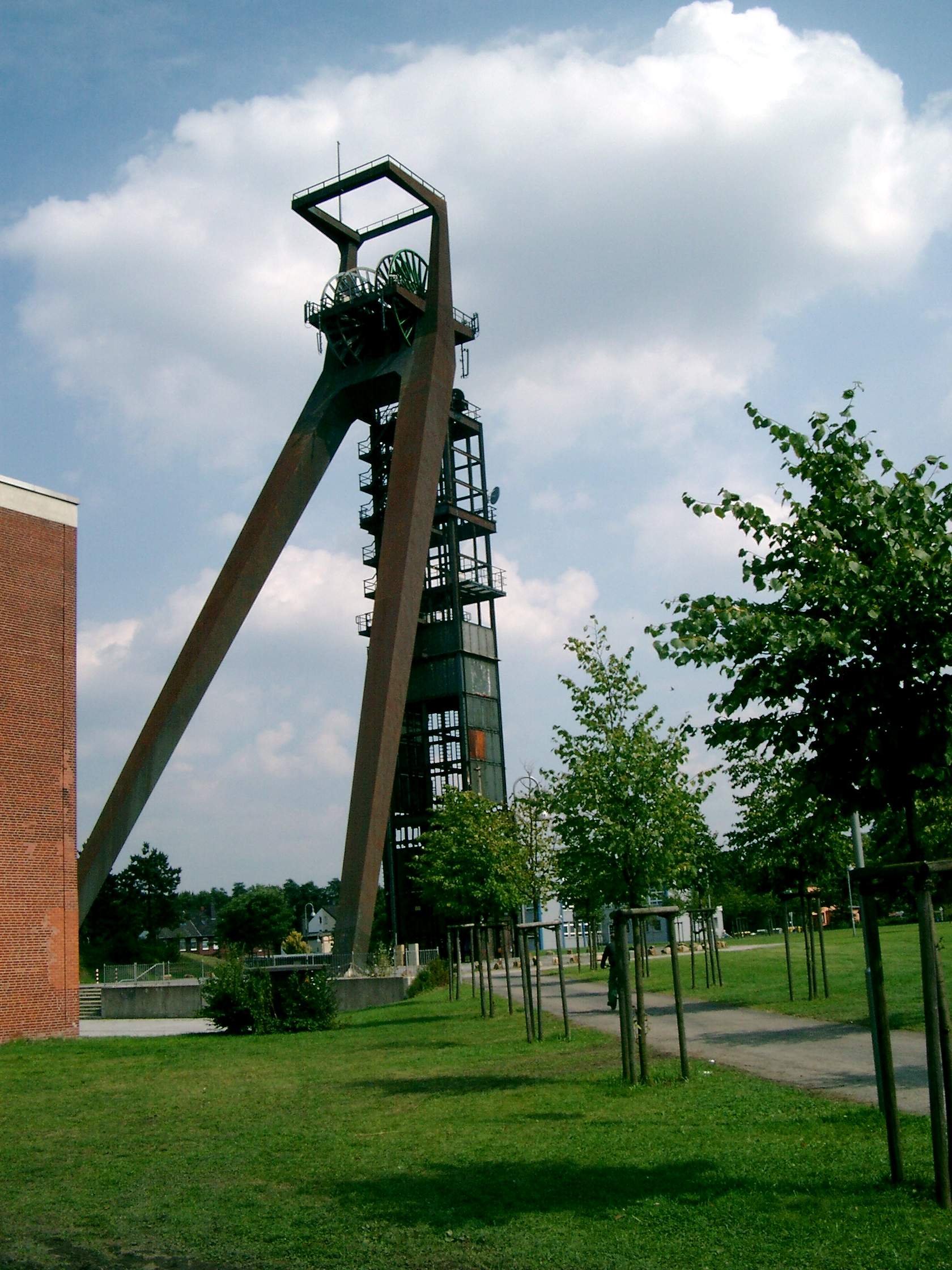 für Schacht 2 stammt vom Schacht 1 der 1960 stillgelegten Zeche Wilhelmine Victoria in Gelsenkirchen (1986 demontiert).