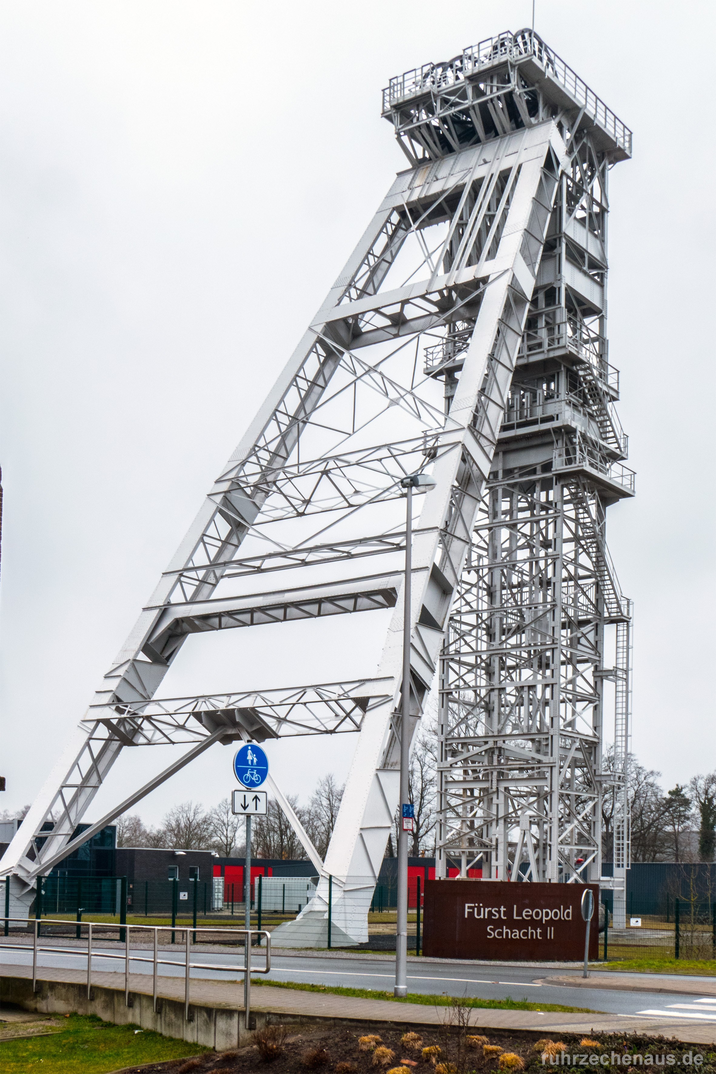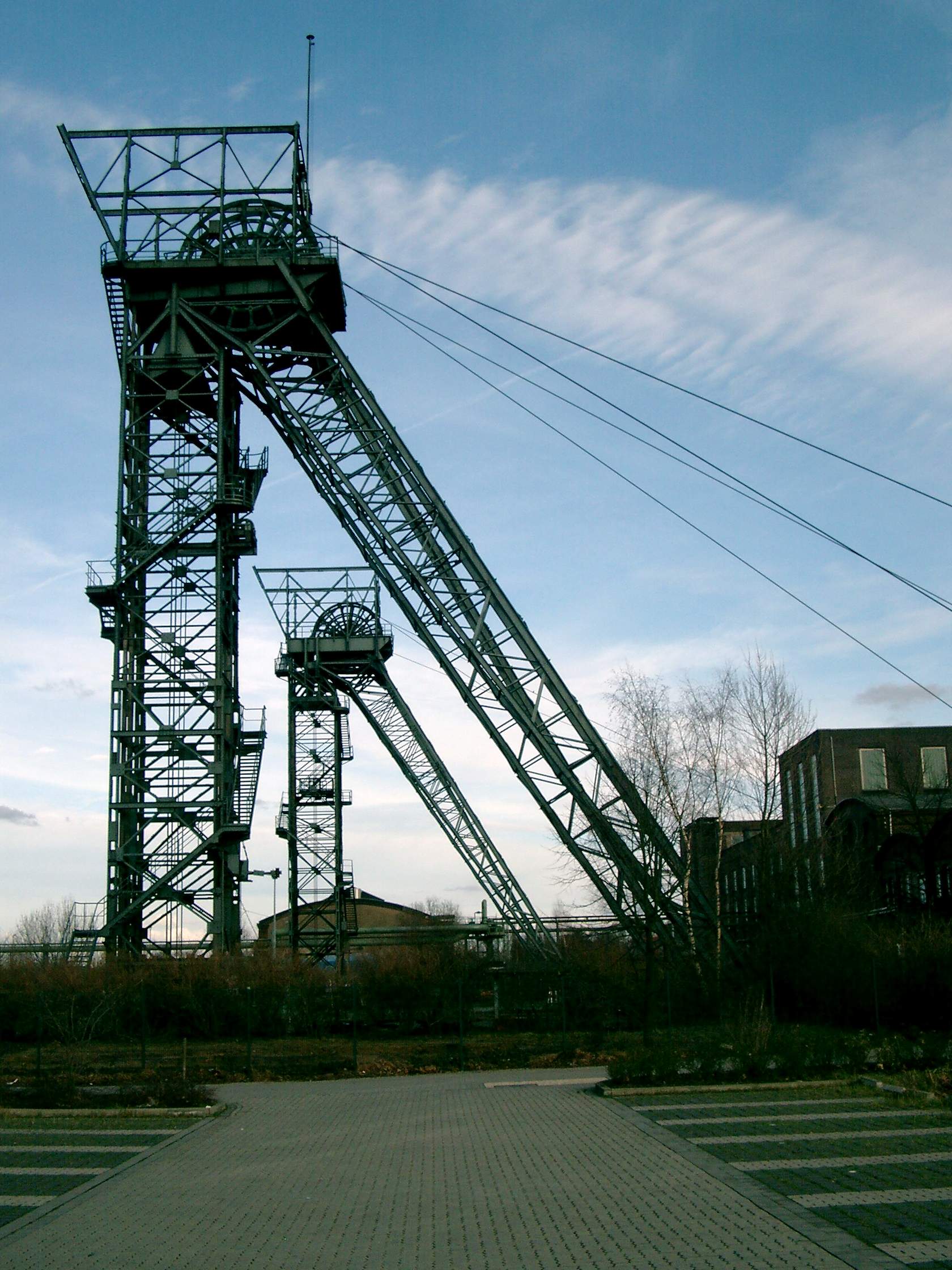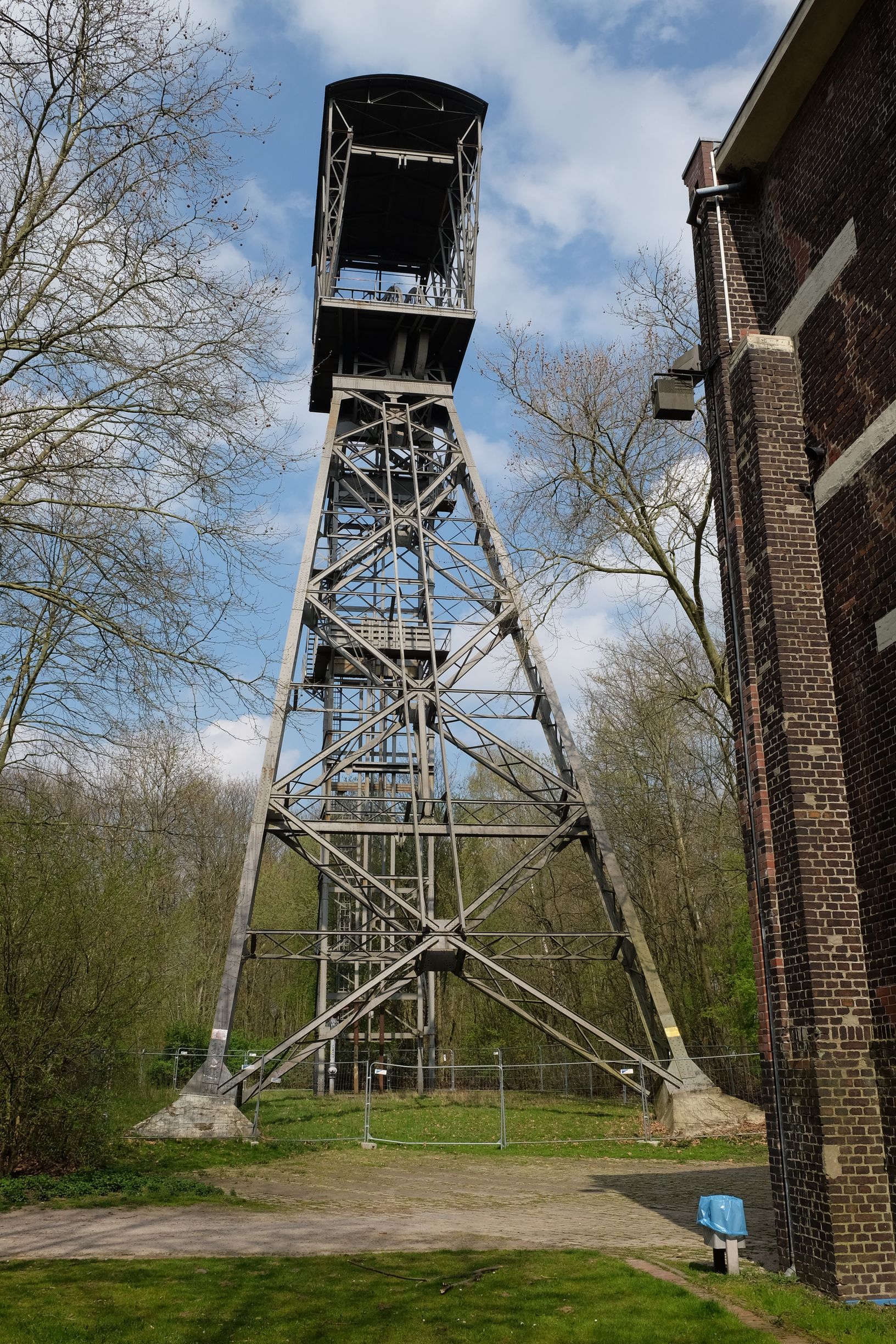 für Schacht 2 stammt vom Schacht 1 der 1960 stillgelegten Zeche Wilhelmine Victoria in Gelsenkirchen (1986 demontiert).