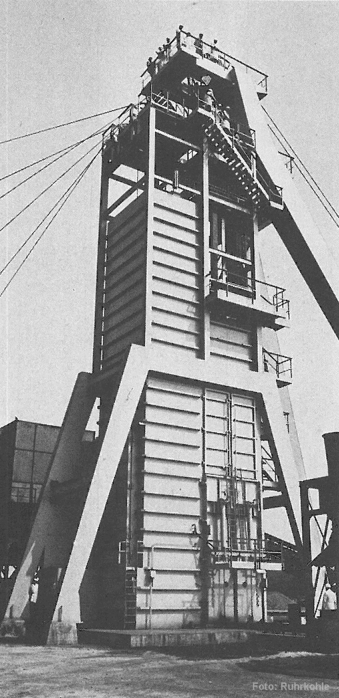 Das Gerüst für Schacht 4 kam von der 1978 stillgelegten Zeche Friedrich der Große in Herne. Dort wurde schon 1980