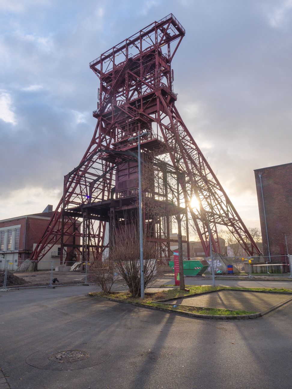 Das Gerüst von Schacht 4 der Zeche Minister Achenbach in Lünen ist heute noch vorhanden, aber umgestaltet.