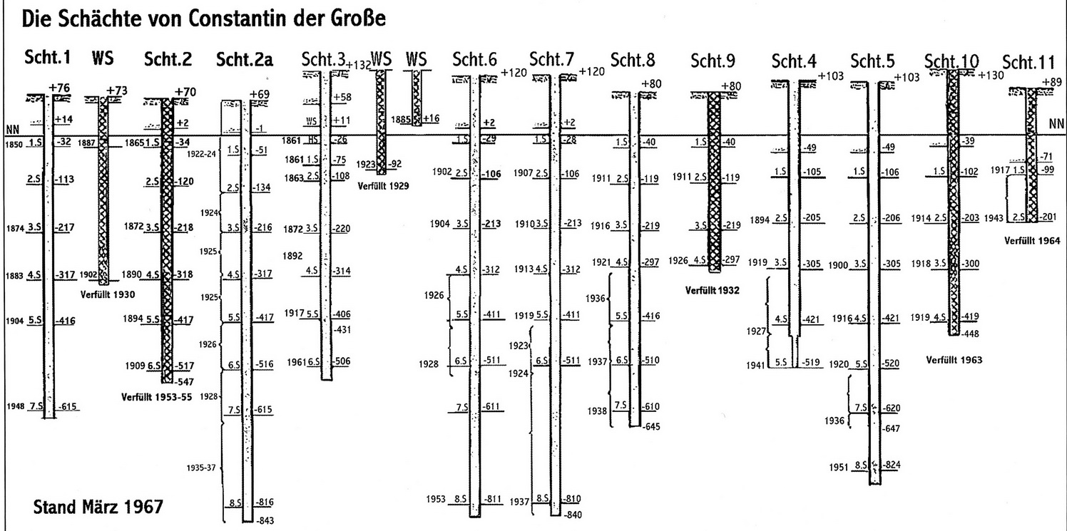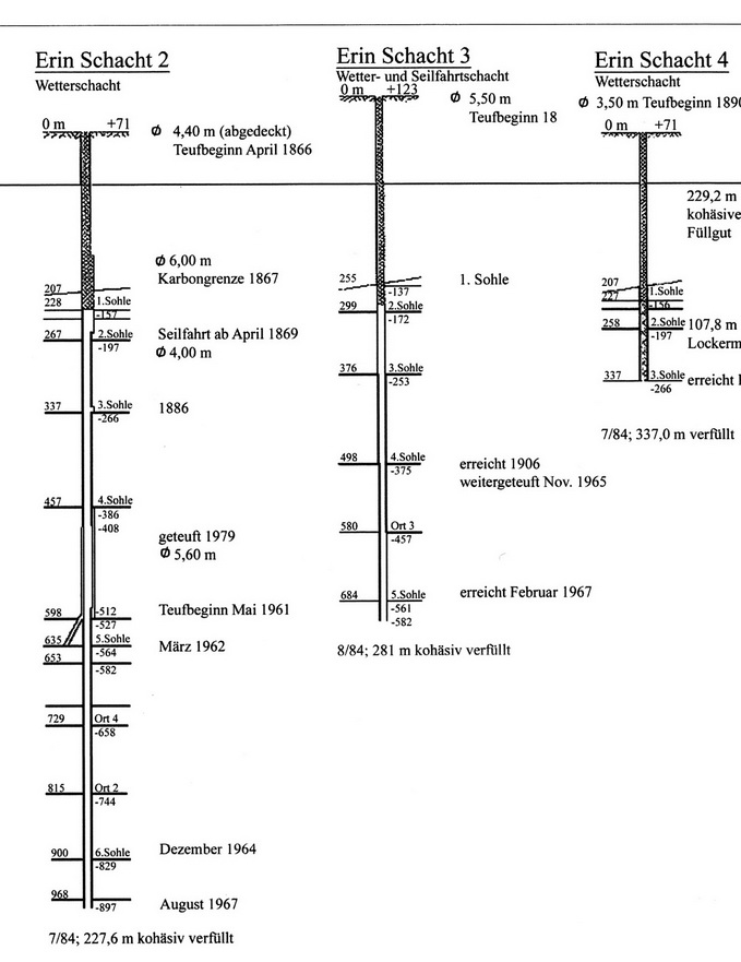 bis zum Abbruchschutt) zum Verfüllen der stillgelegten Schächte genutzt. In der Regel wurde der gesamte Schacht verfüllt.