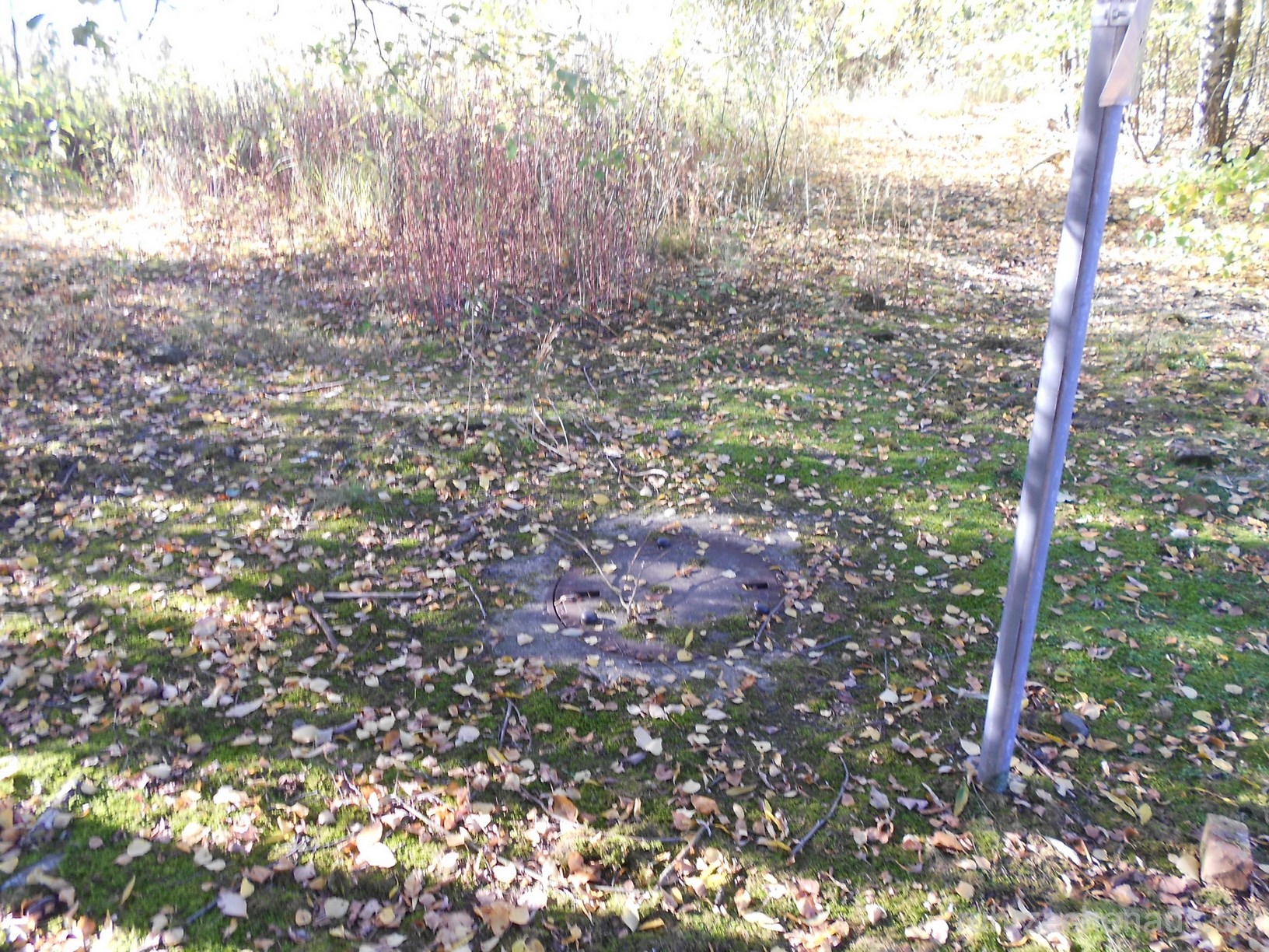 Als Abschluß wurde die mit einer Folie gegen Wurzeln abgesicherte Platte mit Erde überkippt und der obere Teil des Revisionsschachts mit der Nachfüllöffnung aufgesetzt. In einigen Jahren wird nur noch der Deckel und der Baumkreis einen Hinweis auf den Schacht geben, da hier keine Protegohaube nötig ist.