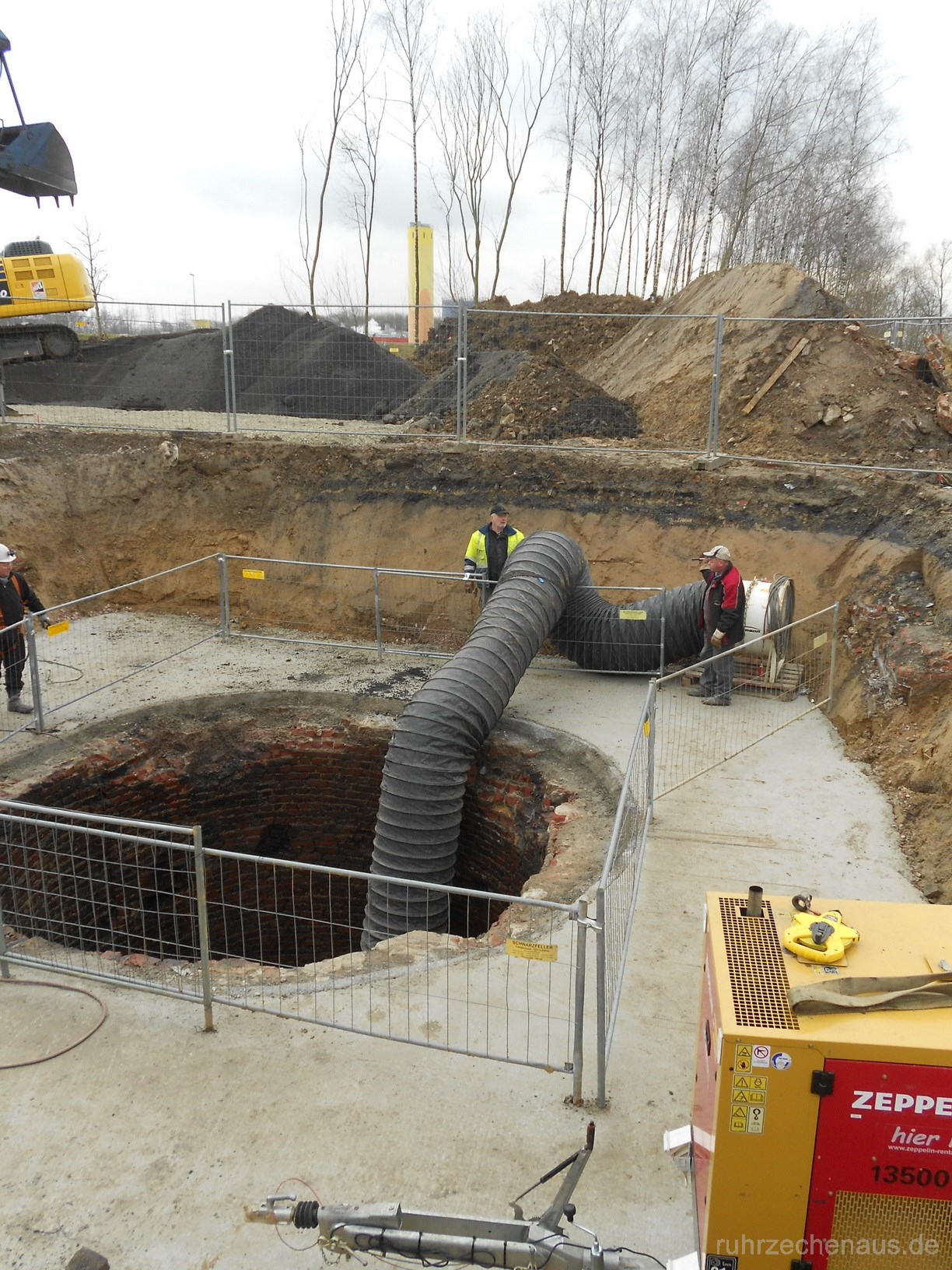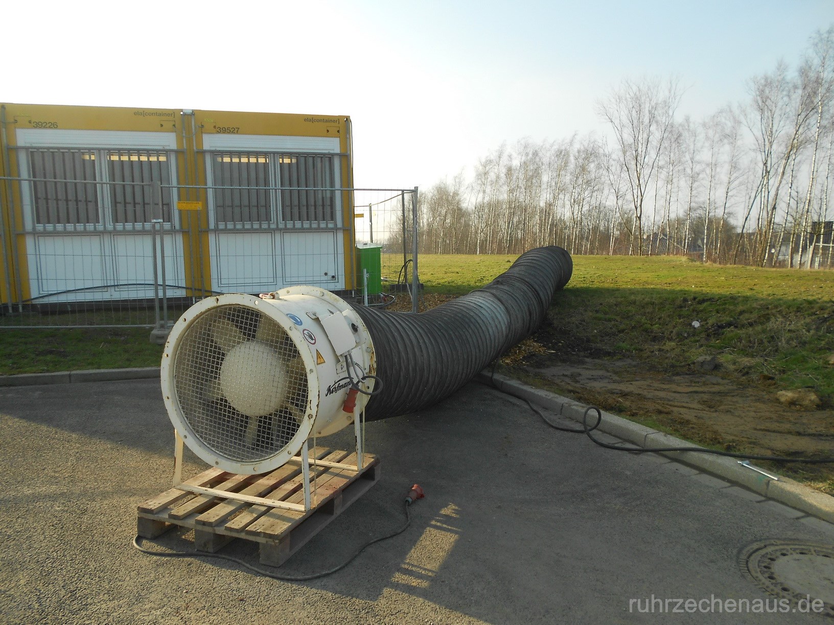 mit dem Bewetterungsgebläse. Bei diesem Schacht waren Ausgasungen nicht zu erwarten, aber die Sicherheit steht immer an erster