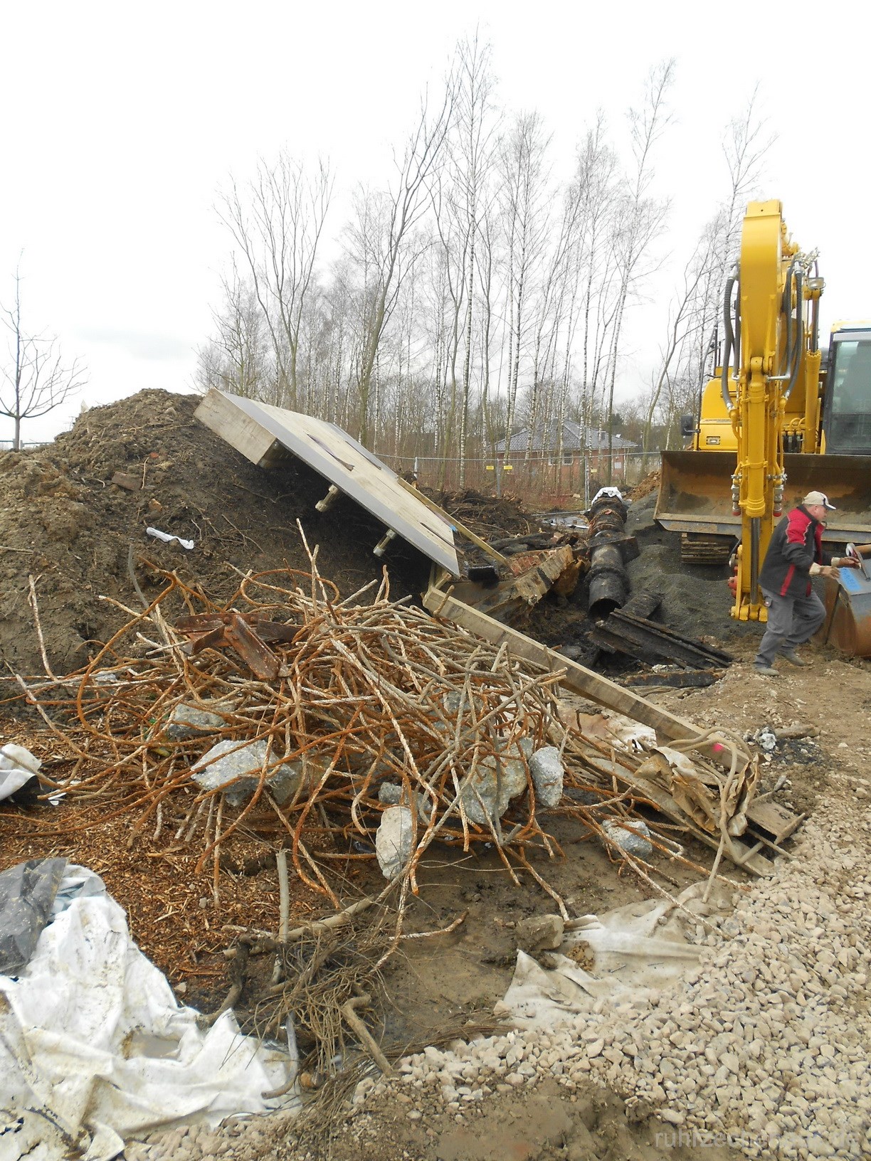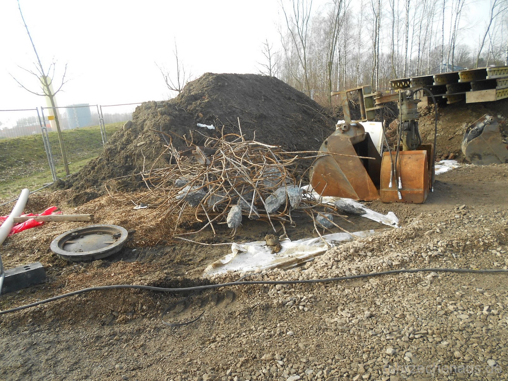 des ausgebaggerten Materials mit Folien unterlegt, um mögliche Kontaminierungen zu vermeiden. Danach wurde die alte Abdeckplatte