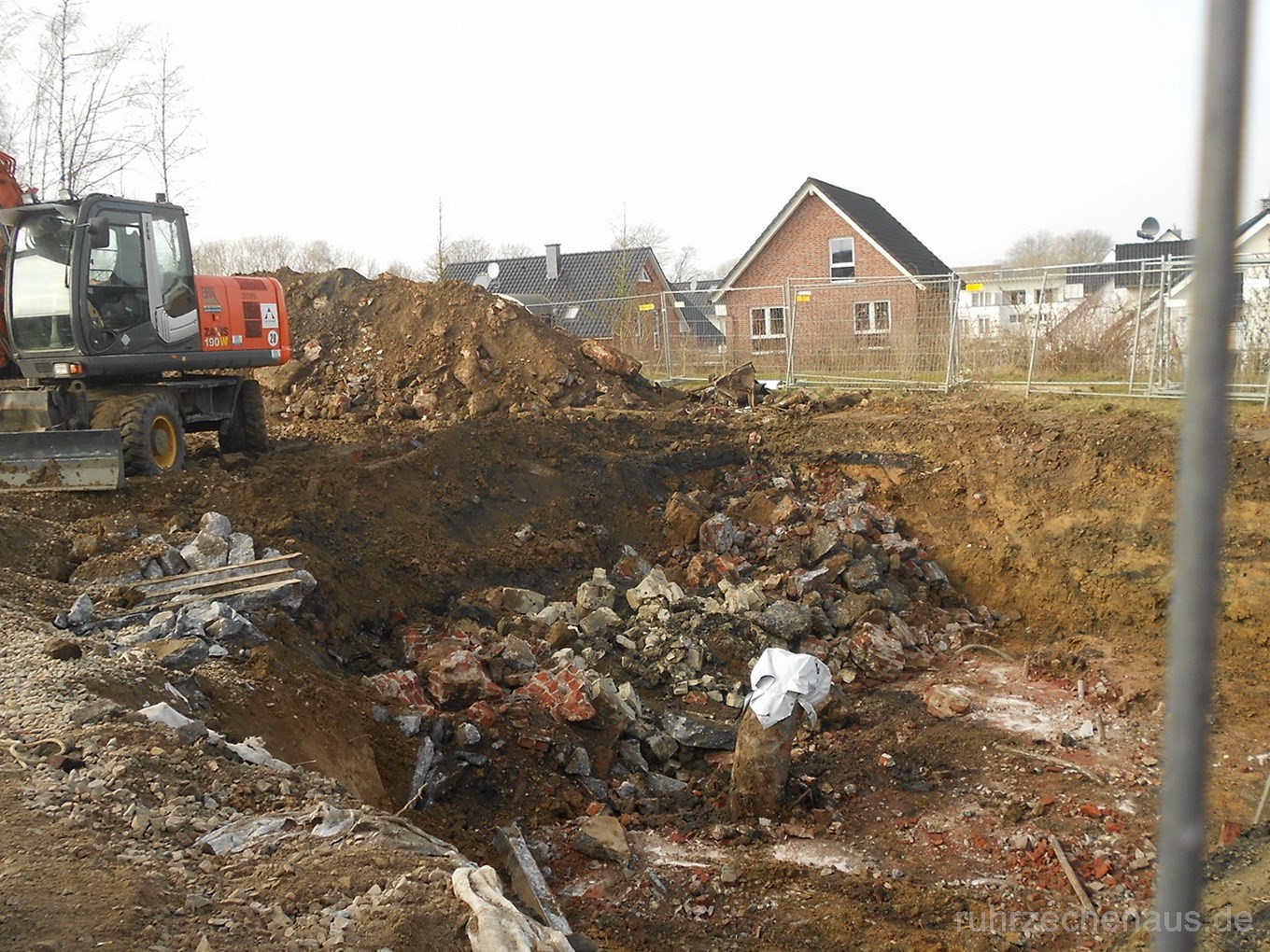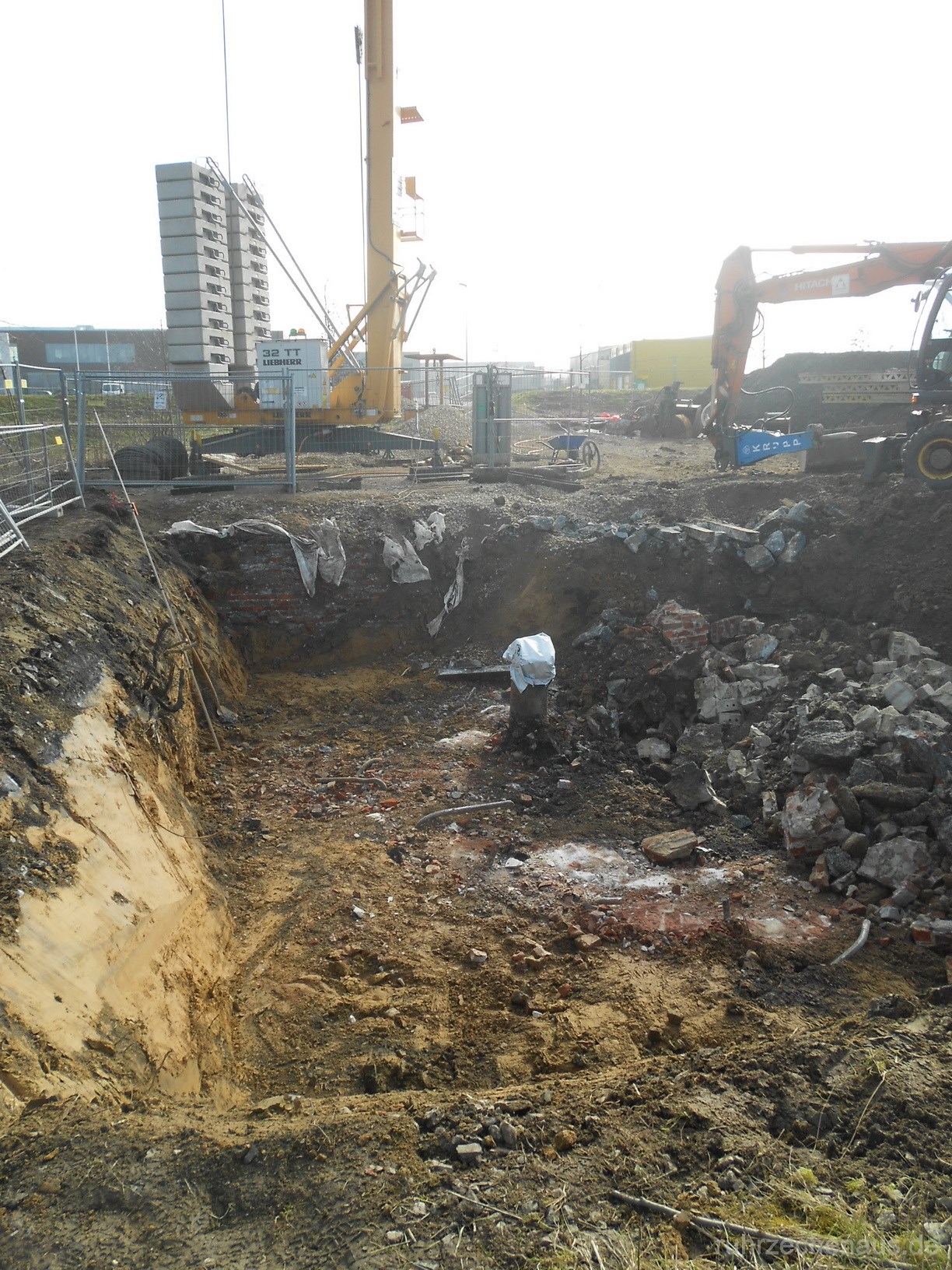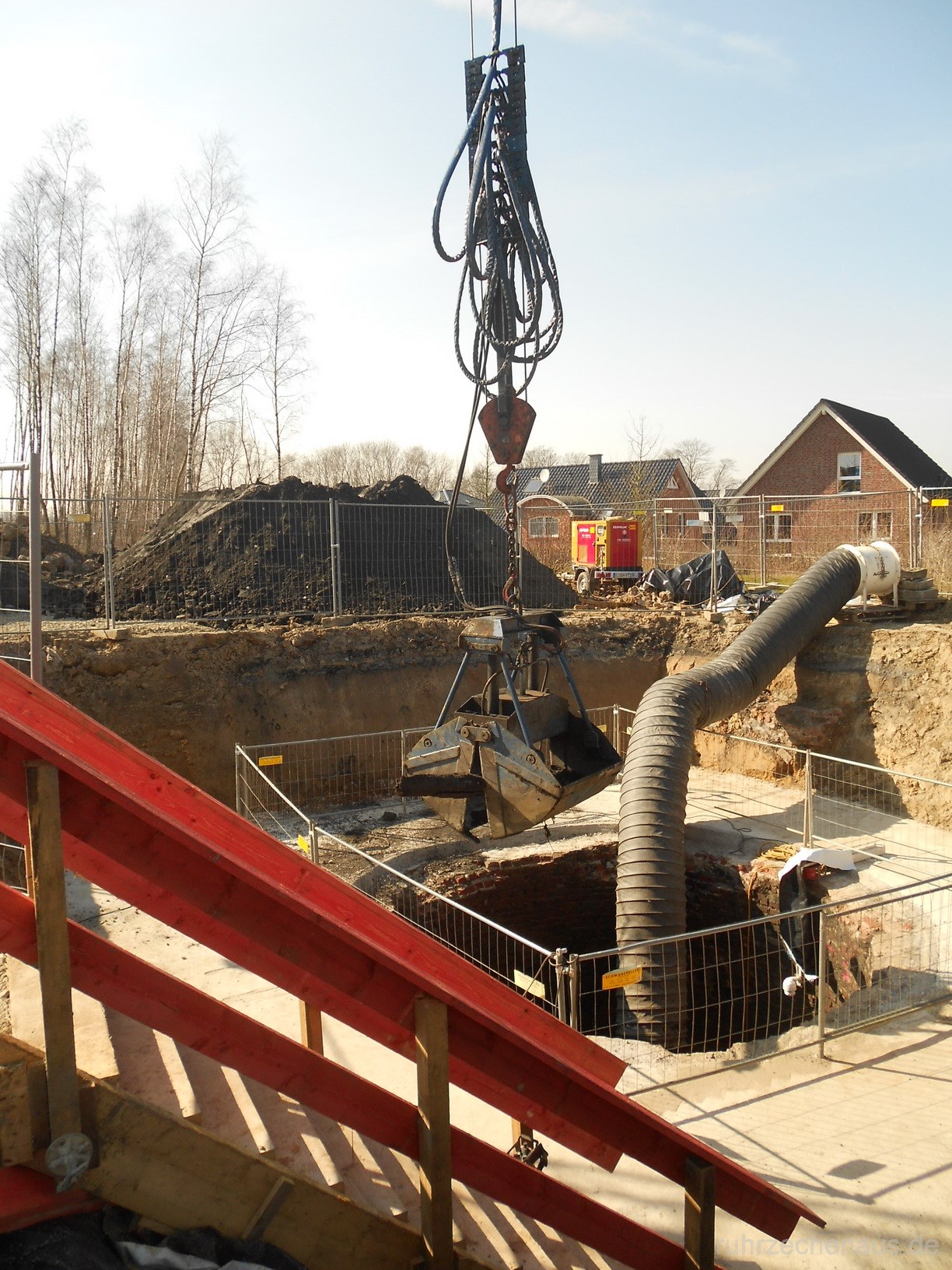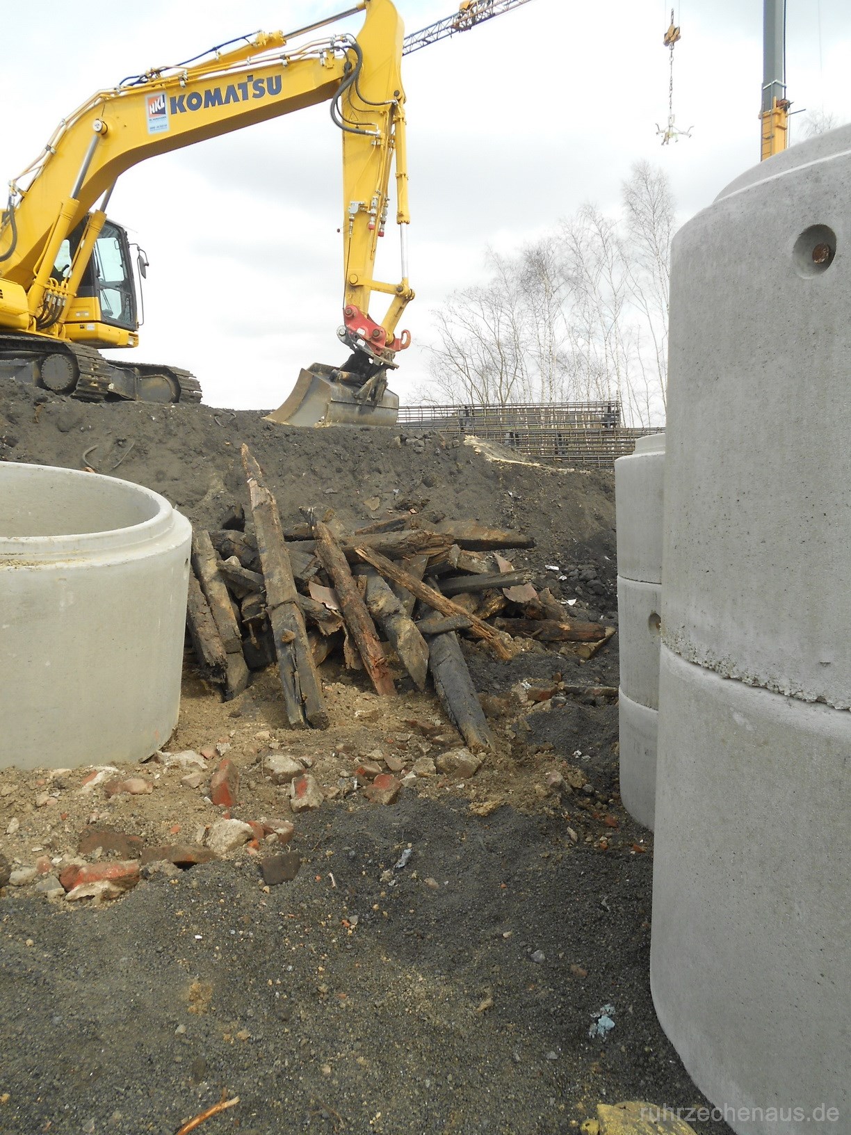 entfernt und eine etwa vier Meter tiefe Baugrube ausgehoben. Der gemauerte Schacht wurde bis auf dieses Niveau abgetragen. Für
